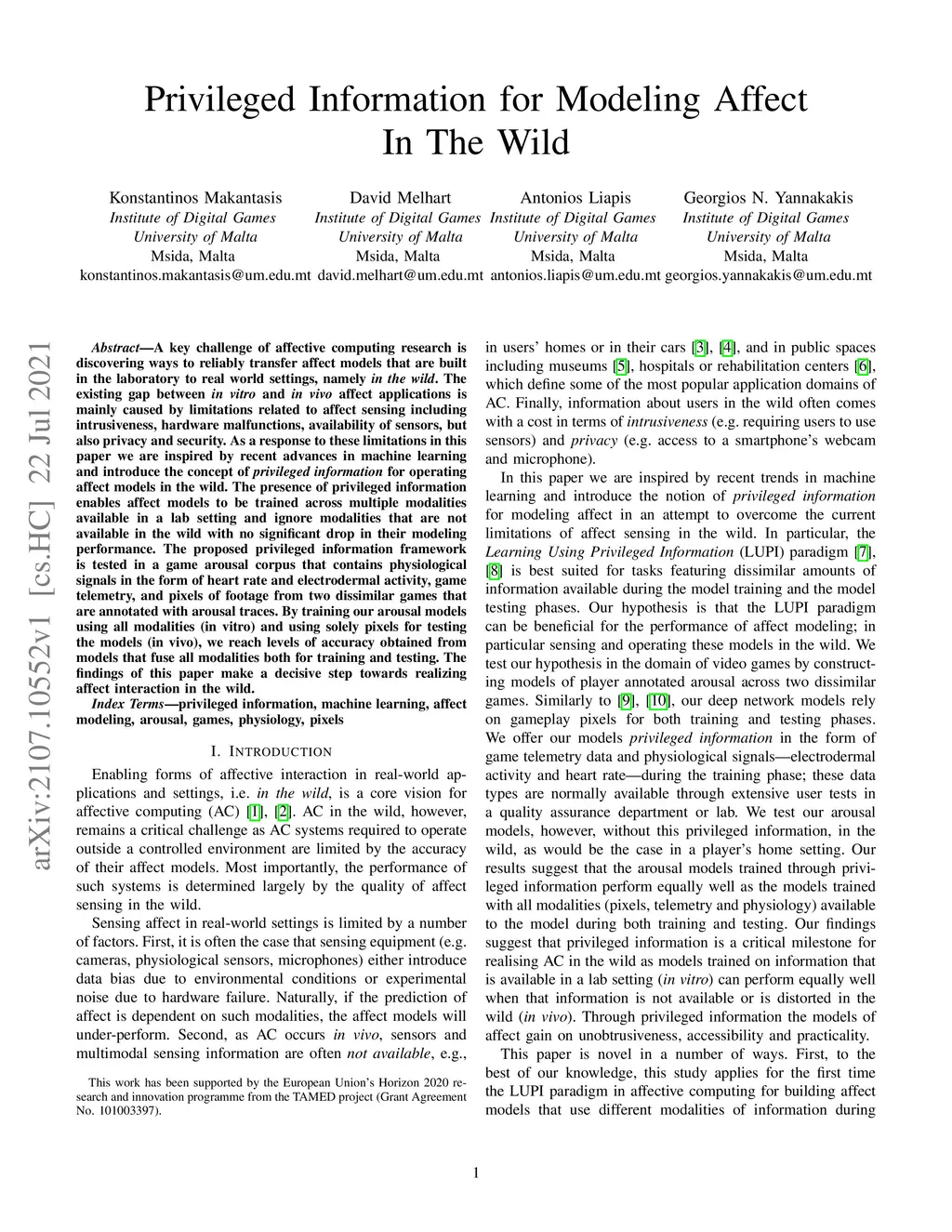 Privileged Information for Modeling Affect In The Wild