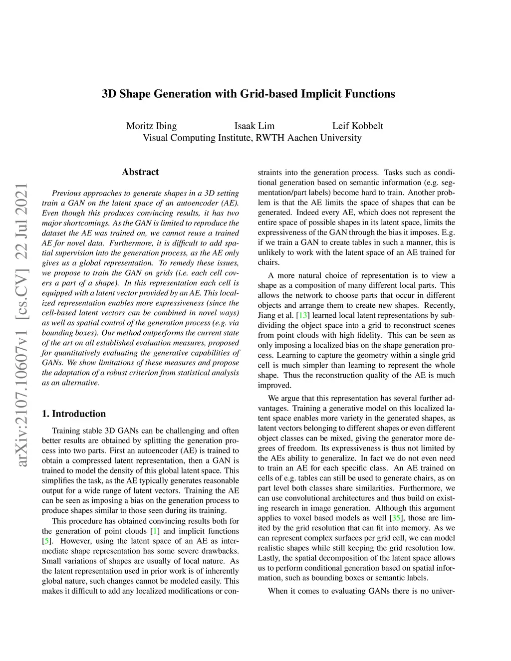 Previous approaches to generate shapes in a 3D setting train a GAN on the latent space of an autoencoder (AE). Even though this produces convincing results, it has two major shortcomings. As the GAN is limited to reproduce the dataset the AE was trained on, we cannot reuse a trained AE for novel data. Furthermore, it is difficult to add spatial supervision into the generation process, as the AE only gives us a global representation. To remedy these issues, we propose to train the GAN on grids (i.e. each cell covers a part of a shape). In this representation each cell is equipped with a latent vector provided by an AE. This localized representation enables more expressiveness (since the cell-based latent vectors can be combined in novel ways) as well as spatial control of the generation process (e.g. via bounding boxes). Our method outperforms the current state of the art on all established evaluation measures, proposed for quantitatively evaluating the generative capabilities of GANs. We show limitations of these measures and propose the adaptation of a robust criterion from statistical analysis as an alternative.