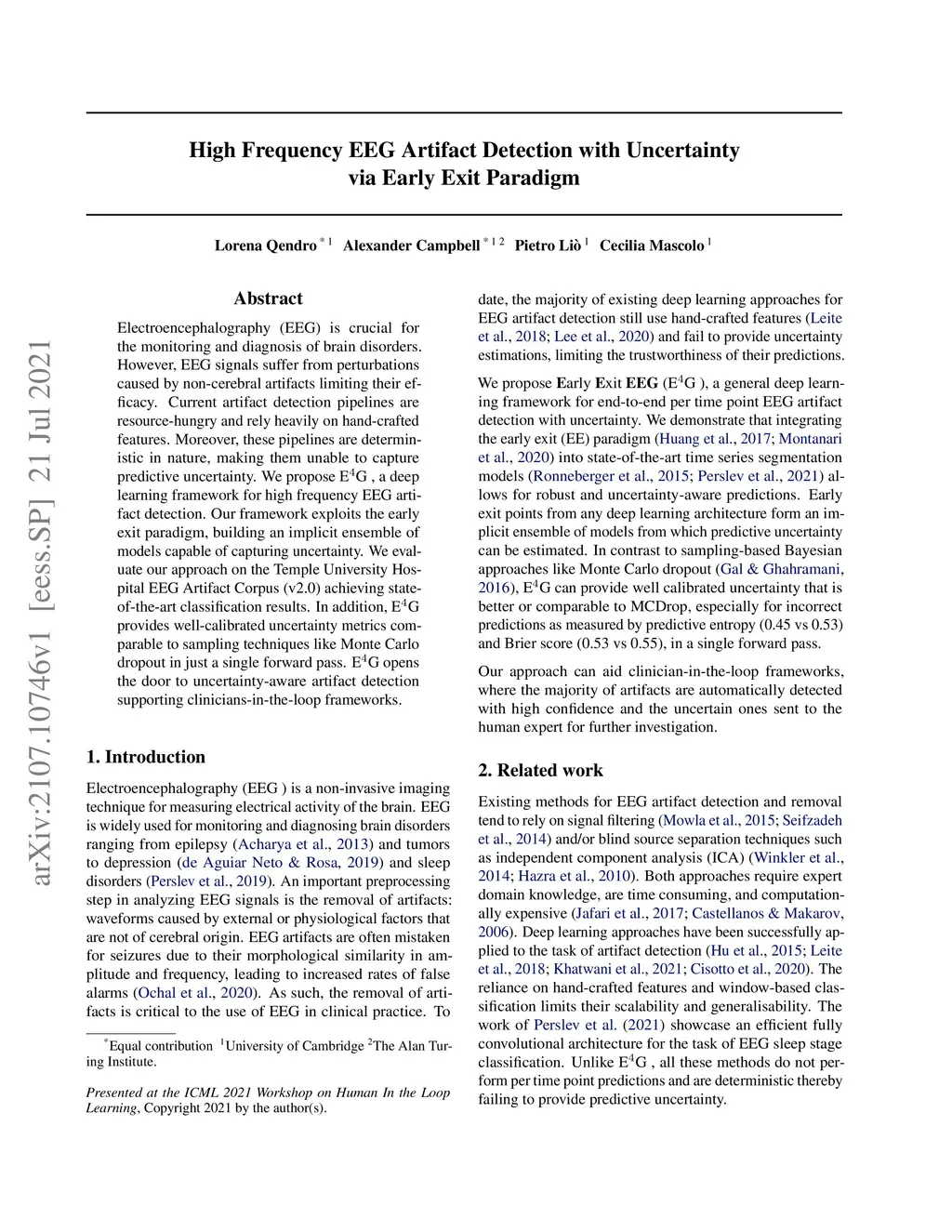 High Frequency EEG Artifact Detection with Uncertainty via Early Exit