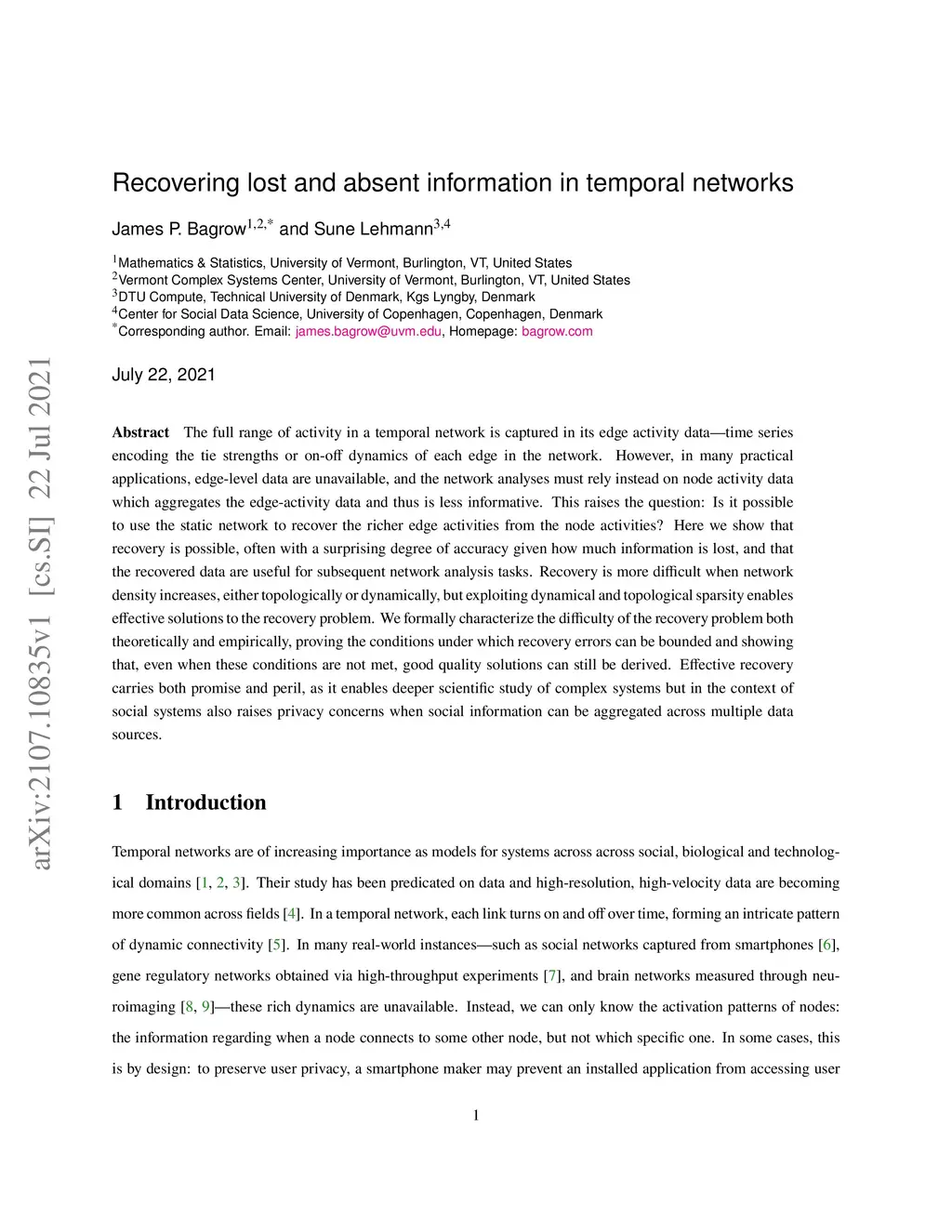 The full range of activity in a temporal network is captured in its edge activity data -- time series encoding the tie strengths or on-off dynamics of each edge in the network. However, in many practical applications, edge-level data are unavailable, and the network analyses must rely instead on node activity data which aggregates the edge-activity data and thus is less informative. This raises the question: Is it possible to use the static network to recover the richer edge activities from the node activities? Here we show that recovery is possible, often with a surprising degree of accuracy given how much information is lost, and that the recovered data are useful for subsequent network analysis tasks. Recovery is more difficult when network density increases, either topologically or dynamically, but exploiting dynamical and topological sparsity enables effective solutions to the recovery problem. We formally characterize the difficulty of the recovery problem both theoretically and empirically, proving the conditions under which recovery errors can be bounded and showing that, even when these conditions are not met, good quality solutions can still be derived. Effective recovery carries both promise and peril, as it enables deeper scientific study of complex systems but in the context of social systems also raises privacy concerns when social information can be aggregated across multiple data sources.