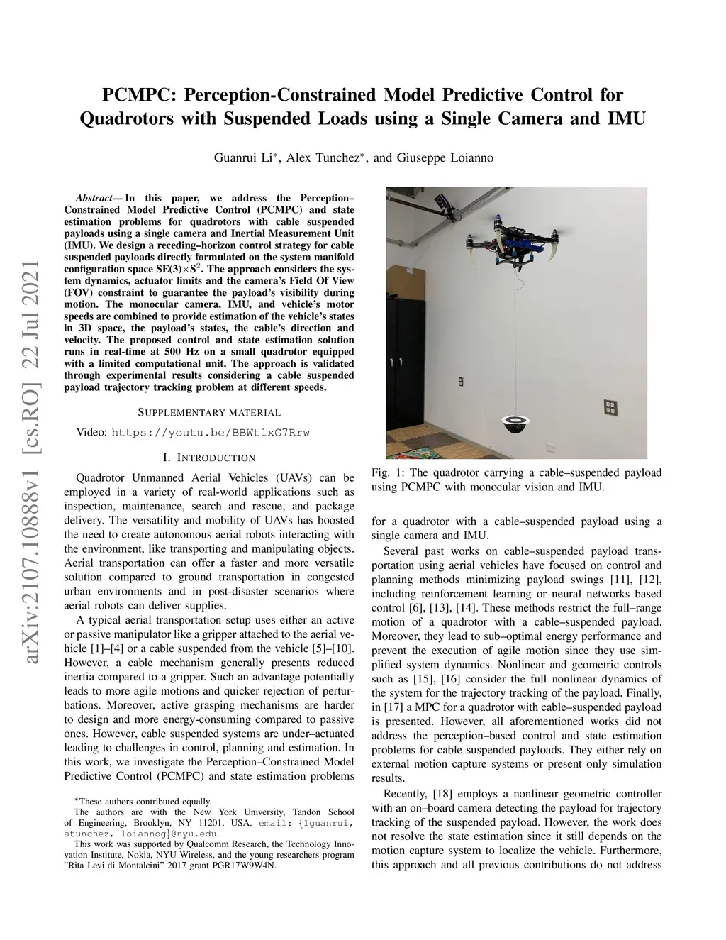 with Suspended Loads using a Single Camera and IMU