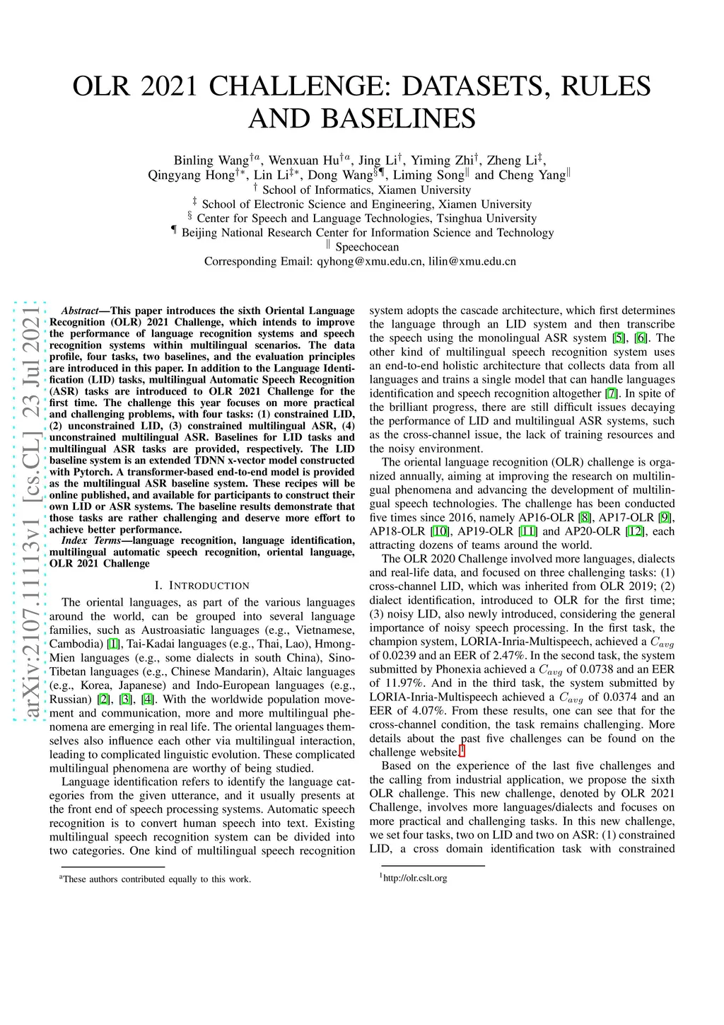 OLR 2021 Challenge: Datasets, Rules and Baselines