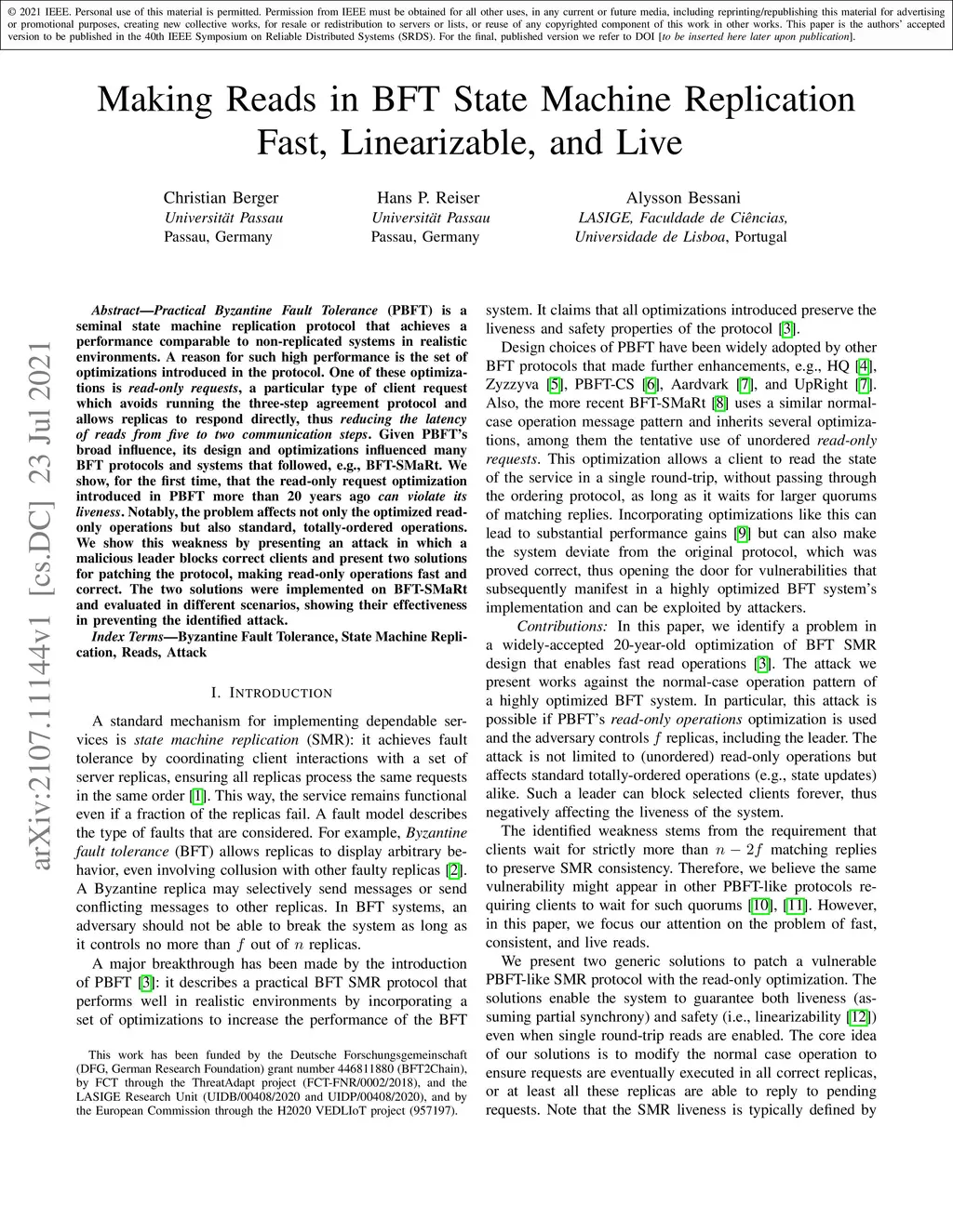 Practical Byzantine Fault Tolerance (PBFT) is a seminal state machine replication protocol that achieves a performance comparable to non-replicated systems in realistic environments. A reason for such high performance is the set of optimizations introduced in the protocol. One of these optimizations is read-only requests, a particular type of client request which avoids running the three-step agreement protocol and allows replicas to respond directly, thus reducing the latency of reads from five to two communication steps. Given PBFT's broad influence, its design and optimizations influenced many BFT protocols and systems that followed, e.g., BFT-SMaRt. We show, for the first time, that the read-only request optimization introduced in PBFT more than 20 years ago can violate its liveness. Notably, the problem affects not only the optimized read-only operations but also standard, totally-ordered operations. We show this weakness by presenting an attack in which a malicious leader blocks correct clients and present two solutions for patching the protocol, making read-only operations fast and correct. The two solutions were implemented on BFT-SMaRt and evaluated in different scenarios, showing their effectiveness in preventing the identified attack.