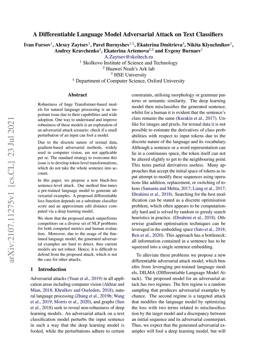 A Differentiable Language Model Adversarial Attack on Text Classifiers