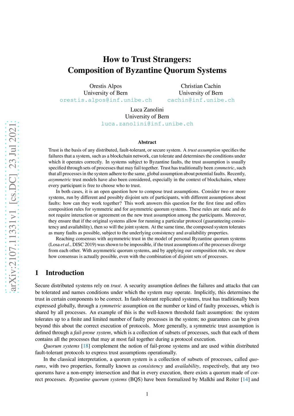 Trust is the basis of any distributed, fault-tolerant, or secure system. A trust assumption specifies the failures that a system, such as a blockchain network, can tolerate and determines the conditions under which it operates correctly. In systems subject to Byzantine faults, the trust assumption is usually specified through sets of processes that may fail together. Trust has traditionally been symmetric, such that all processes in the system adhere to the same, global assumption about potential faults. Recently, asymmetric trust models have also been considered, especially in the context of blockchains, where every participant is free to choose who to trust. In both cases, it is an open question how to compose trust assumptions. Consider two or more systems, run by different and possibly disjoint sets of participants, with different assumptions about faults: how can they work together? This work answers this question for the first time and offers composition rules for symmetric and for asymmetric quorum systems. These rules are static and do not require interaction or agreement on the new trust assumption among the participants. Moreover, they ensure that if the original systems allow for running a particular protocol (guaranteeing consistency and availability), then so will the joint system. At the same time, the composed system tolerates as many faults as possible, subject to the underlying consistency and availability properties. Reaching consensus with asymmetric trust in the model of personal Byzantine quorum systems (Losa et al., DISC 2019) was shown to be impossible, if the trust assumptions of the processes diverge from each other. With asymmetric quorum systems, and by applying our composition rule, we show how consensus is actually possible, even with the combination of disjoint sets of processes.