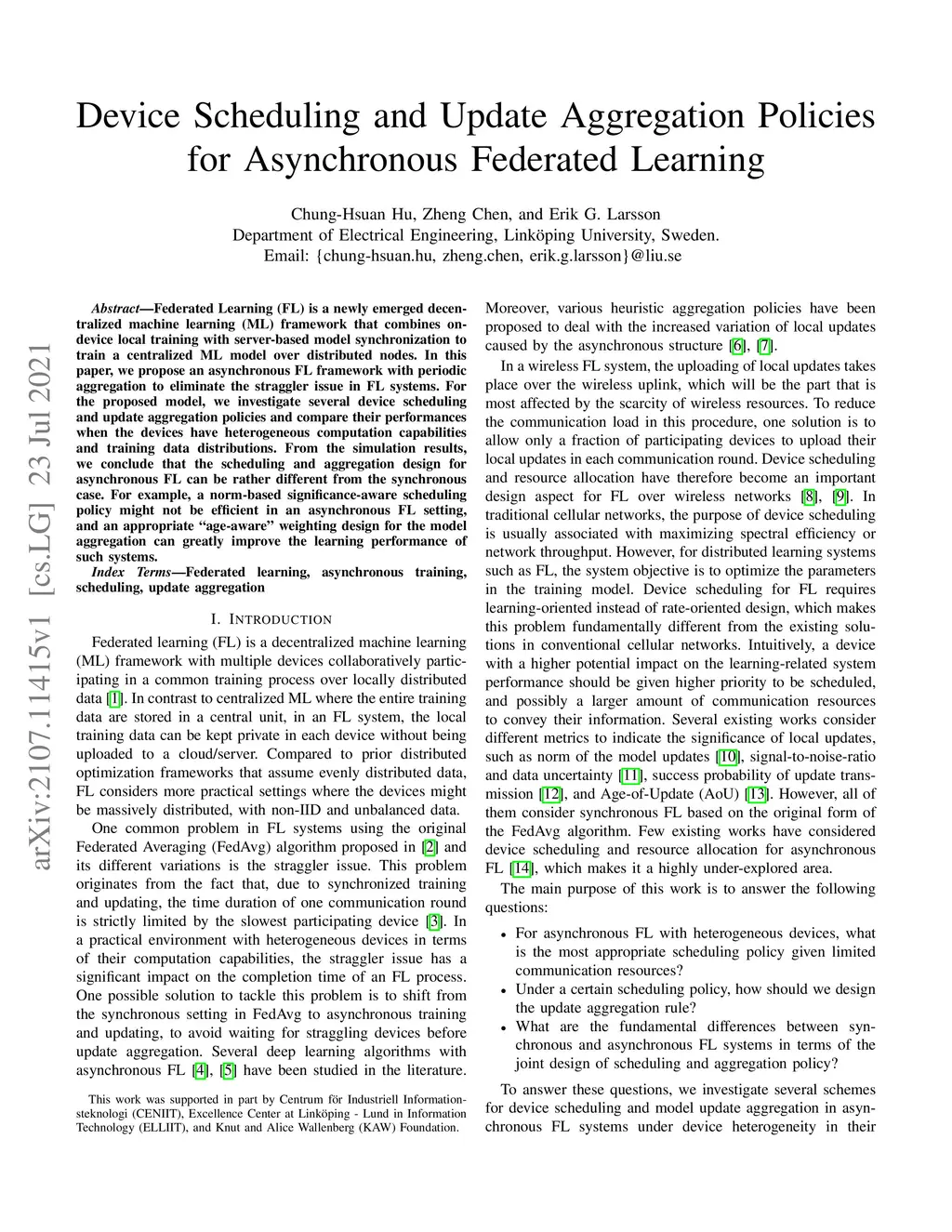 Device Scheduling and Update Aggregation Policies for Asynchronous