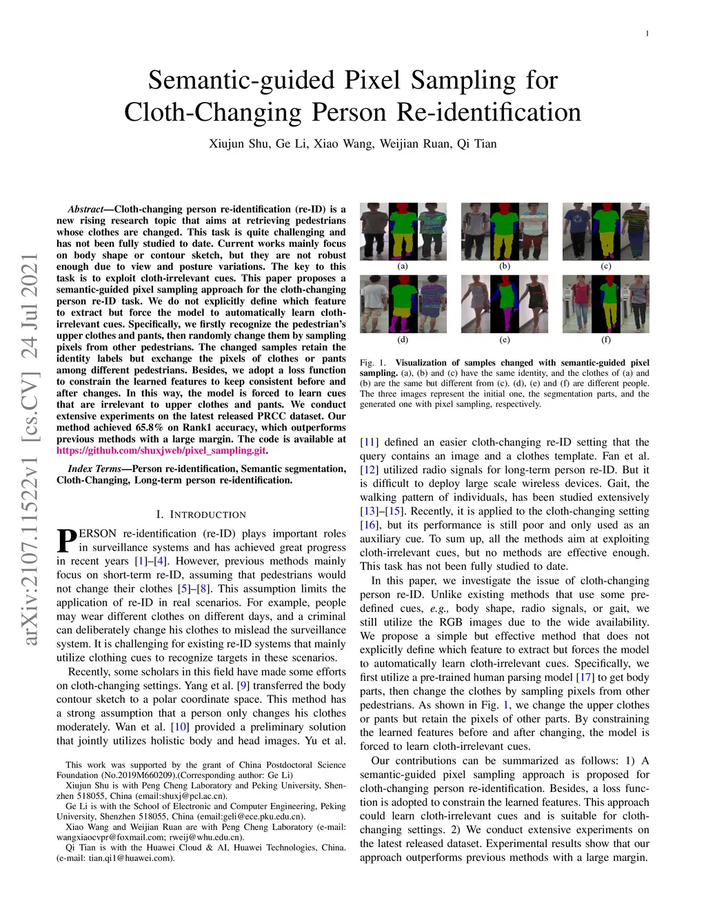 Semantic-guided Pixel Sampling for Cloth-Changing Person
