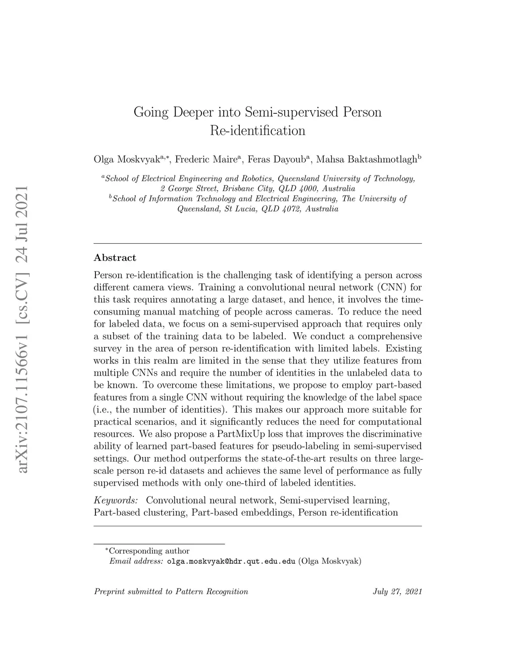 Person re-identification is the challenging task of identifying a person across different camera views. Training a convolutional neural network (CNN) for this task requires annotating a large dataset, and hence, it involves the time-consuming manual matching of people across cameras. To reduce the need for labeled data, we focus on a semi-supervised approach that requires only a subset of the training data to be labeled. We conduct a comprehensive survey in the area of person re-identification with limited labels. Existing works in this realm are limited in the sense that they utilize features from multiple CNNs and require the number of identities in the unlabeled data to be known. To overcome these limitations, we propose to employ part-based features from a single CNN without requiring the knowledge of the label space (i.e., the number of identities). This makes our approach more suitable for practical scenarios, and it significantly reduces the need for computational resources. We also propose a PartMixUp loss that improves the discriminative ability of learned part-based features for pseudo-labeling in semi-supervised settings. Our method outperforms the state-of-the-art results on three large-scale person re-id datasets and achieves the same level of performance as fully supervised methods with only one-third of labeled identities.