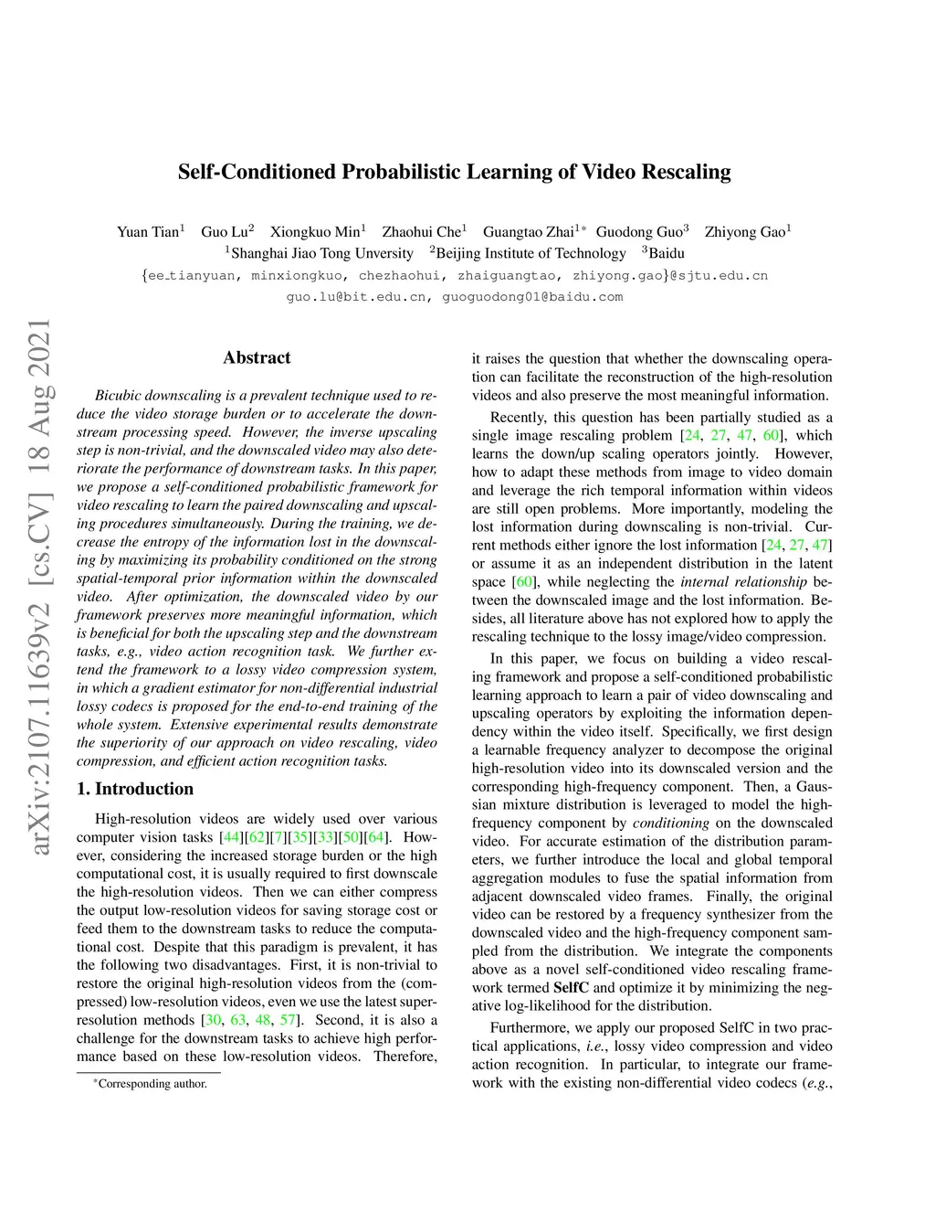 Self-Conditioned Probabilistic Learning of Video Rescaling