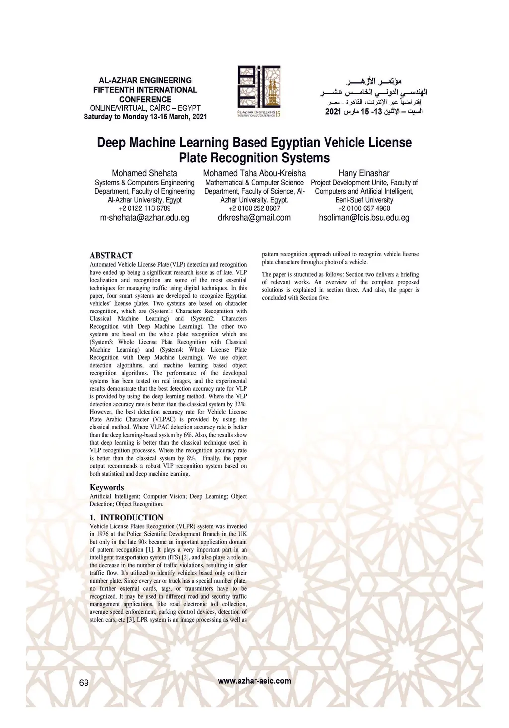 Deep Machine Learning Based Egyptian Vehicle License Plate Recognition