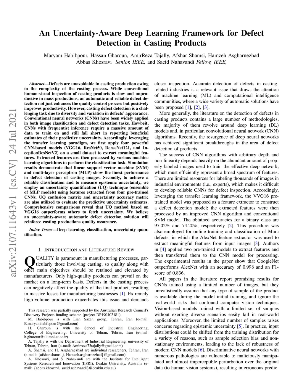 An Uncertainty-Aware Deep Learning Framework for Defect Detection in