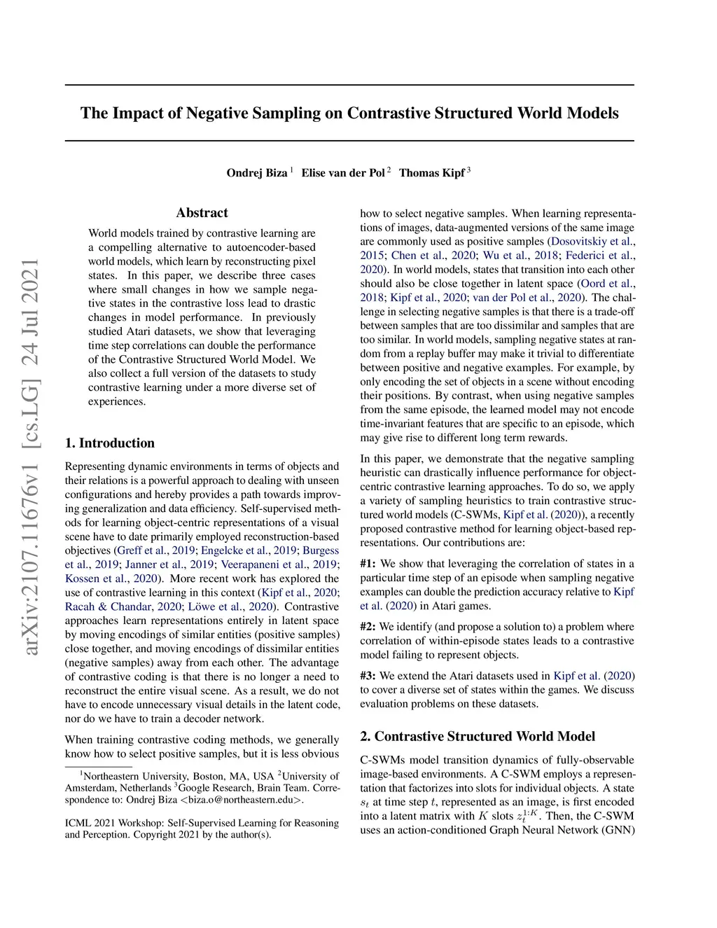 World models trained by contrastive learning are a compelling alternative to autoencoder-based world models, which learn by reconstructing pixel states. In this paper, we describe three cases where small changes in how we sample negative states in the contrastive loss lead to drastic changes in model performance. In previously studied Atari datasets, we show that leveraging time step correlations can double the performance of the Contrastive Structured World Model. We also collect a full version of the datasets to study contrastive learning under a more diverse set of experiences.