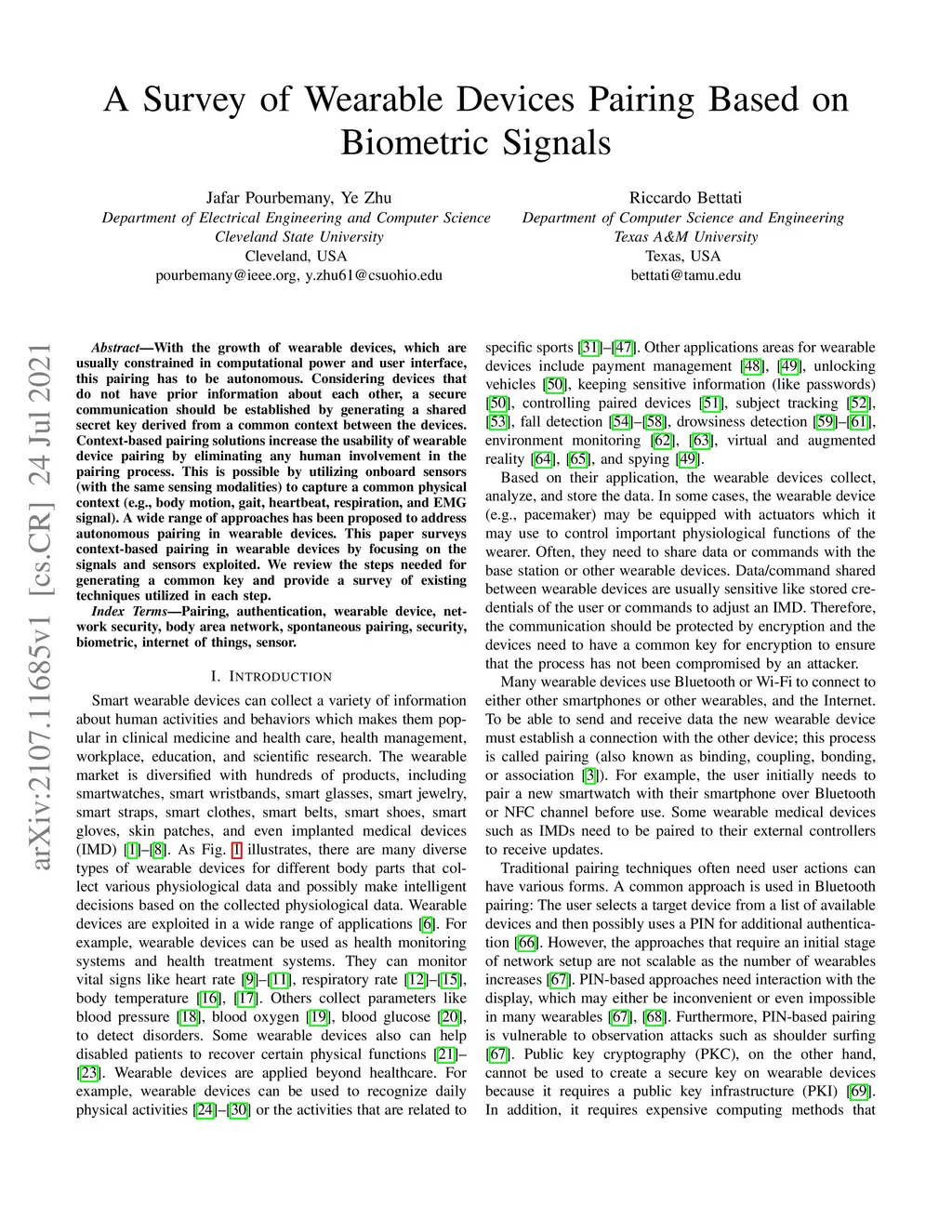 A Survey of Wearable Devices Pairing Based on Biometric Signals
