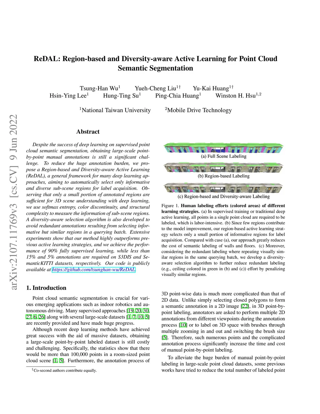 ReDAL: Region-based and Diversity-aware Active Learning for Point Cloud
