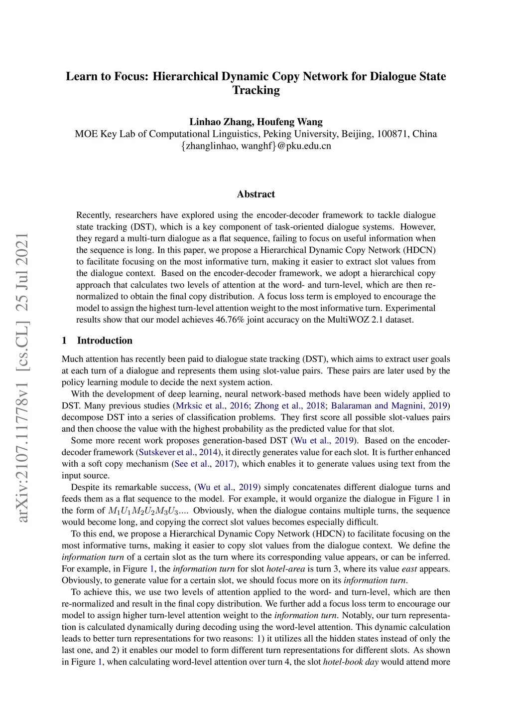 Learn to Focus: Hierarchical Dynamic Copy Network for Dialogue State