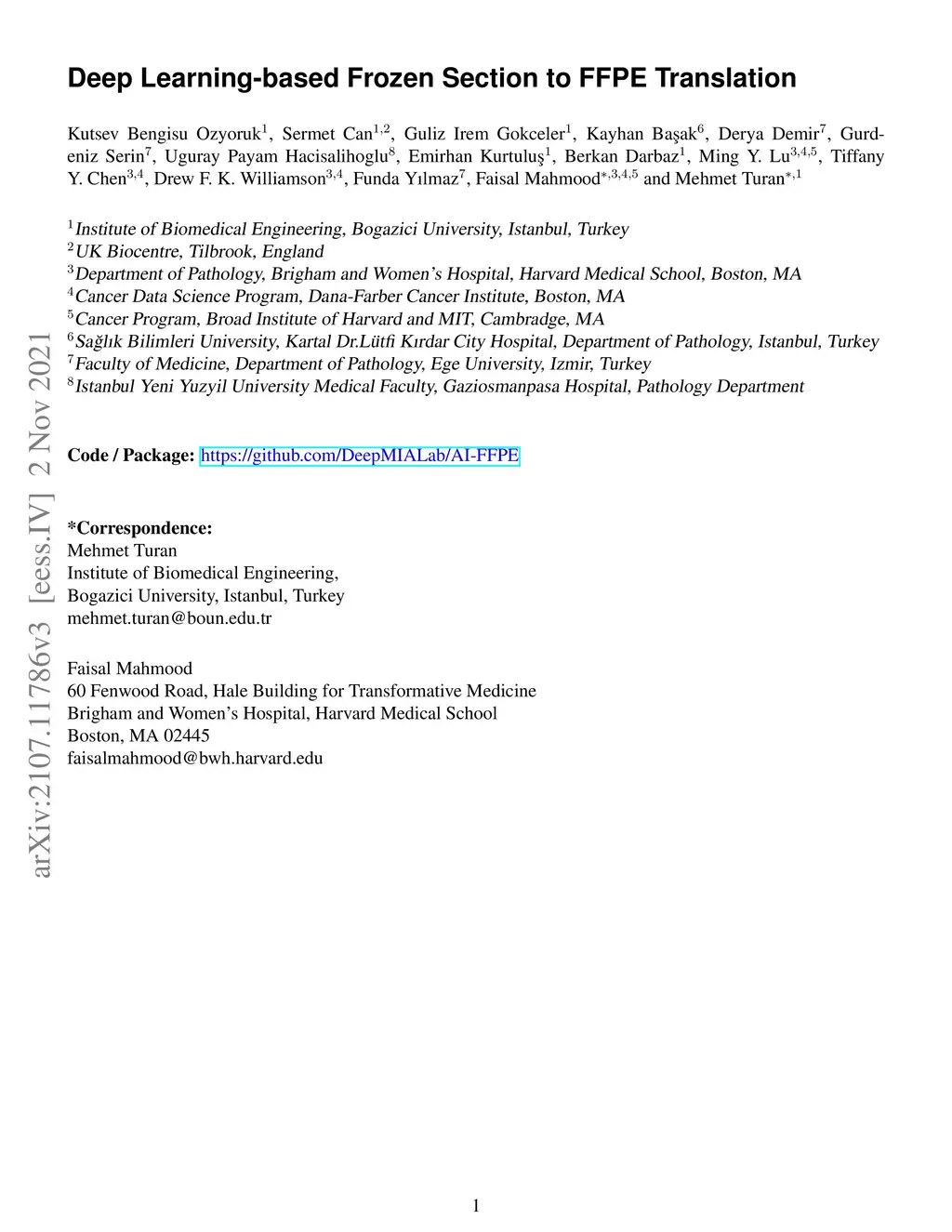 Frozen sectioning (FS) is the preparation method of choice for microscopic evaluation of tissues during surgical operations. The high speed of the procedure allows pathologists to rapidly assess the key microscopic features, such as tumour margins and malignant status to guide surgical decision-making and minimise disruptions to the course of the operation. However, FS is prone to introducing many misleading artificial structures (histological artefacts), such as nuclear ice crystals, compression, and cutting artefacts, hindering timely and accurate diagnostic judgement of the pathologist. Additional training and prolonged experience is often required to make highly effective and time-critical diagnosis on frozen sections. On the other hand, the gold standard tissue preparation technique of formalin-fixation and paraffin-embedding (FFPE) provides significantly superior image quality, but is a very time-consuming process (12-48 hours), making it unsuitable for intra-operative use. In this paper, we propose an artificial intelligence (AI) method that improves FS image quality by computationally transforming frozen-sectioned whole-slide images (FS-WSIs) into whole-slide FFPE-style images in minutes. AI-FFPE rectifies FS artefacts with the guidance of an attention mechanism that puts a particular emphasis on artefacts while utilising a self-regularization mechanism established between FS input image and synthesized FFPE-style image that preserves clinically relevant features. As a result, AI-FFPE method successfully generates FFPE-style images without significantly extending tissue processing time and consequently improves diagnostic accuracy. We demonstrate the efficacy of AI-FFPE on lung and brain frozen sections using a variety of different qualitative and quantitative metrics including visual Turing tests from 20 board certified pathologists.