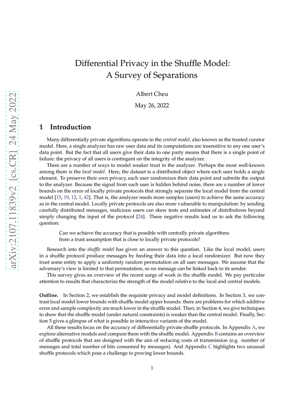 Differential privacy is often studied in one of two models. In the central model, a single analyzer has the responsibility of performing a privacy-preserving computation on data. But in the local model, each data owner ensures their own privacy. Although it removes the need to trust the analyzer, local privacy comes at a price: a locally private protocol is less accurate than a centrally private counterpart when solving many learning and estimation problems. Protocols in the shuffle model are designed to attain the best of both worlds: recent work has shown high accuracy is possible with only a mild trust assumption. This survey paper gives an overview of novel shuffle protocols, along with lower bounds that establish the limits of the new model. We also summarize work that show the promise of interactivity in the shuffle model.