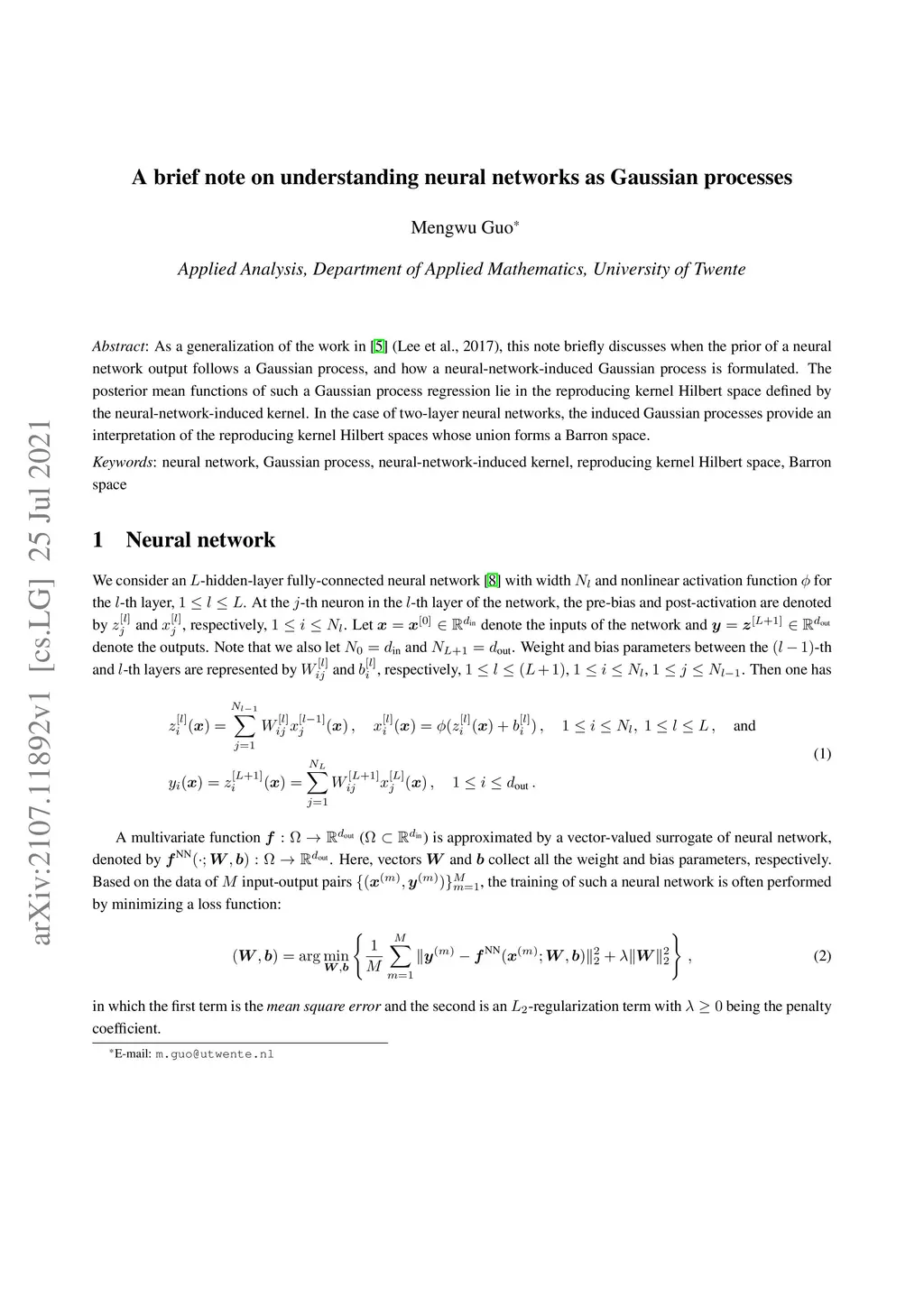 As a generalization of the work in [Lee et al., 2017], this note briefly discusses when the prior of a neural network output follows a Gaussian process, and how a neural-network-induced Gaussian process is formulated. The posterior mean functions of such a Gaussian process regression lie in the reproducing kernel Hilbert space defined by the neural-network-induced kernel. In the case of two-layer neural networks, the induced Gaussian processes provide an interpretation of the reproducing kernel Hilbert spaces whose union forms a Barron space.