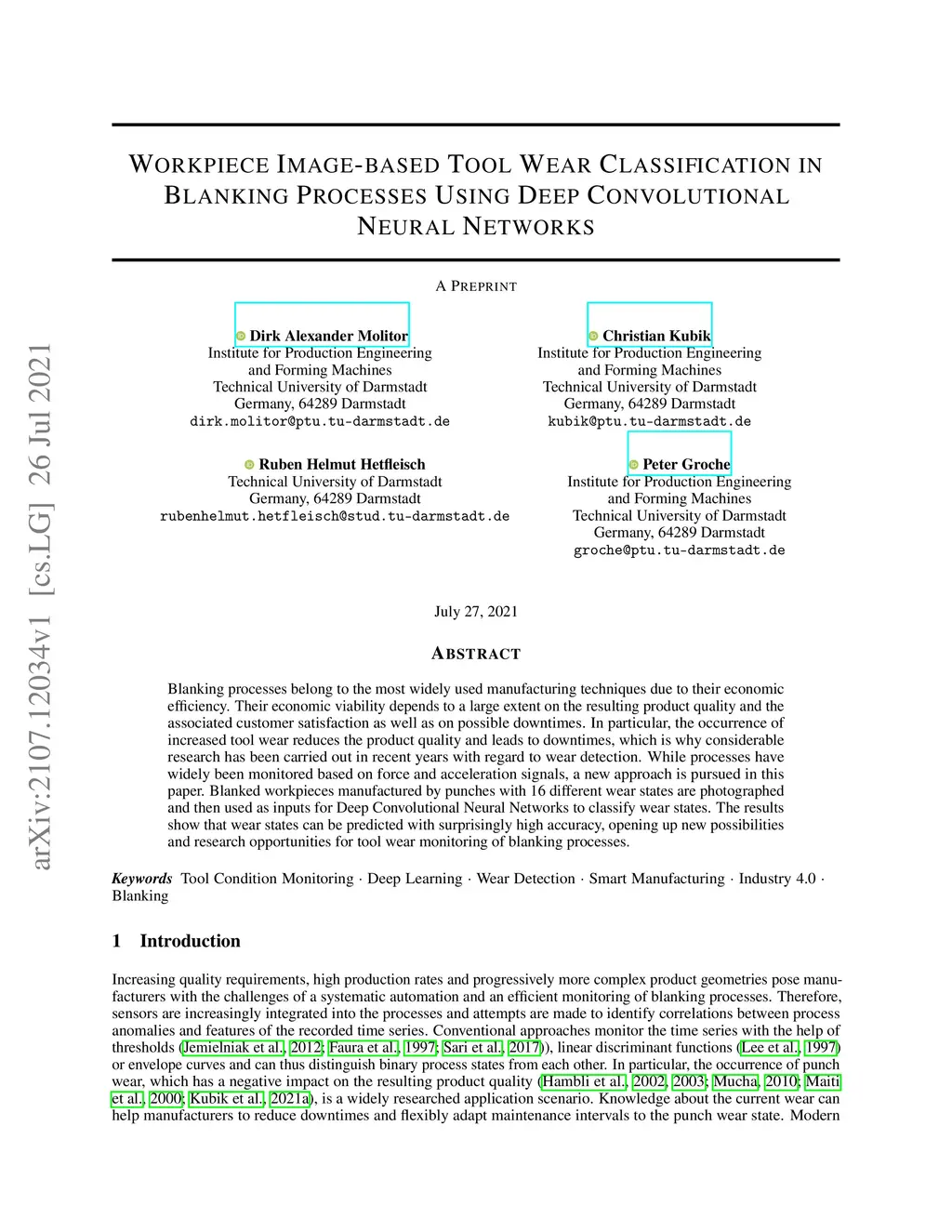 Workpiece Image-based Tool Wear Classification in Blanking Processes