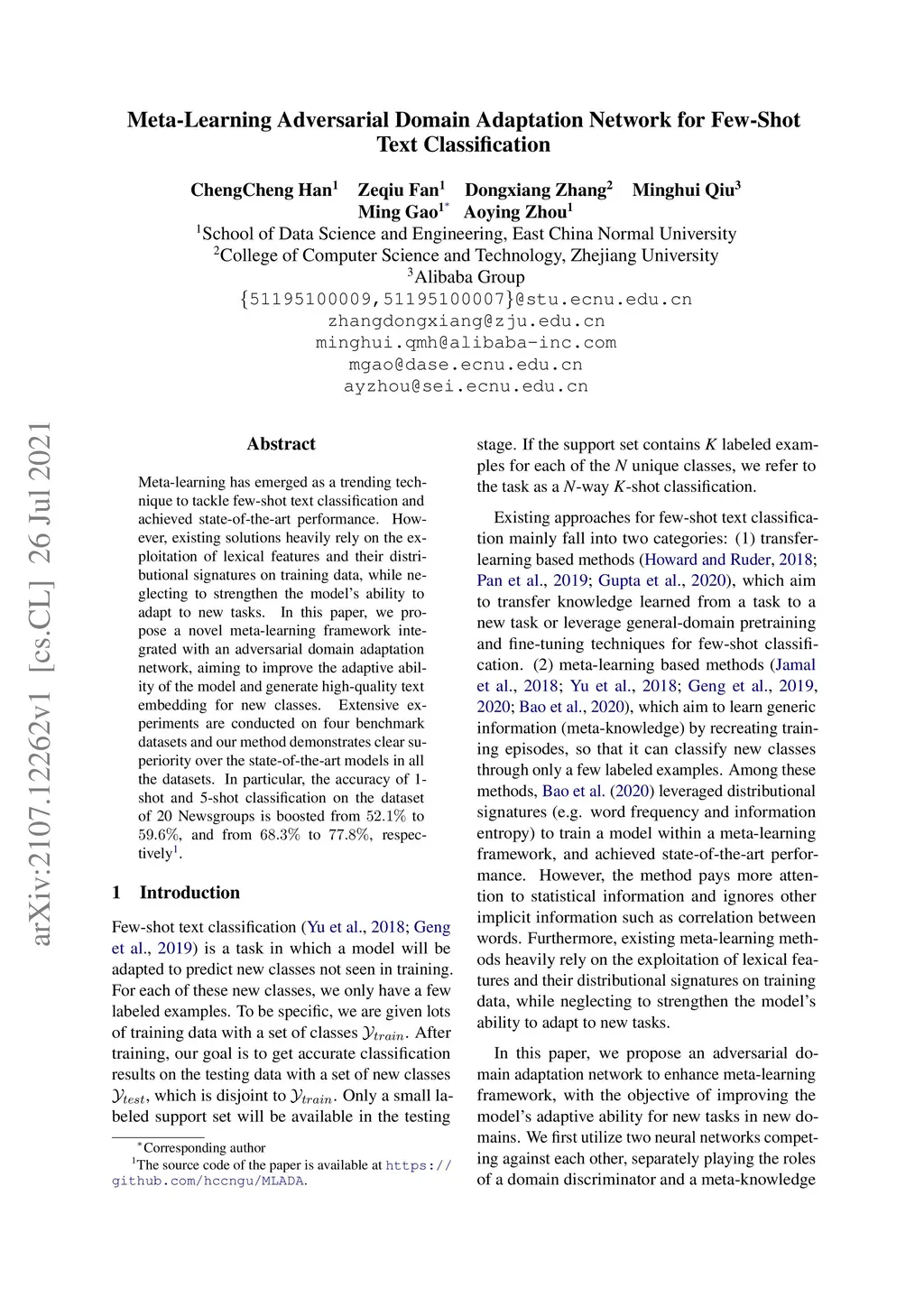 Meta-Learning Adversarial Domain Adaptation Network for Few-Shot Text