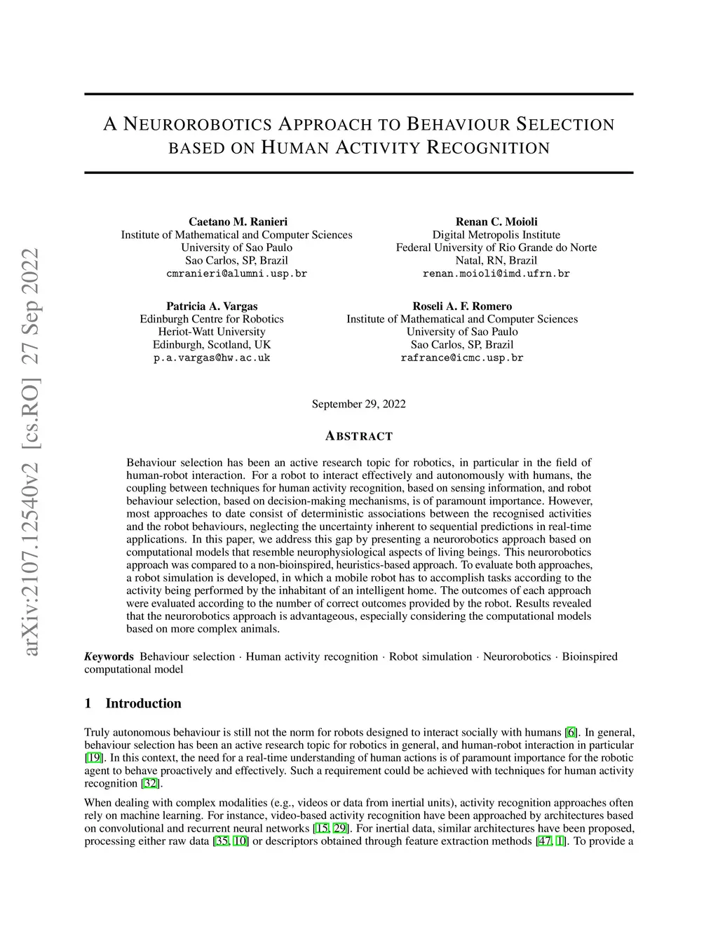 A Neurorobotics Approach to Behaviour Selection based on Human Activity