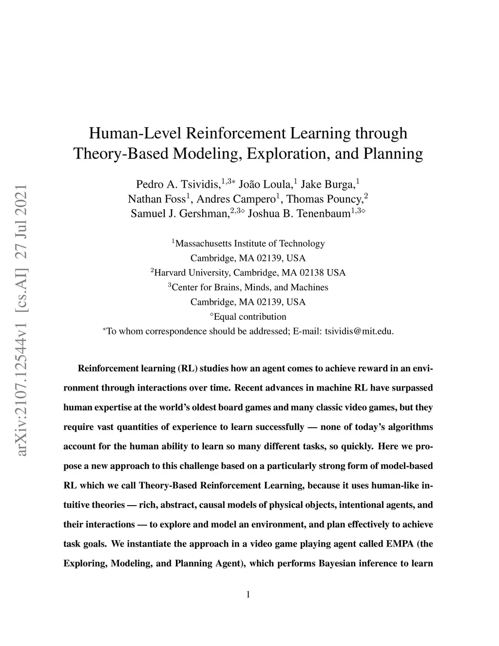 Human-Level Reinforcement Learning through Theory-Based Modeling,
