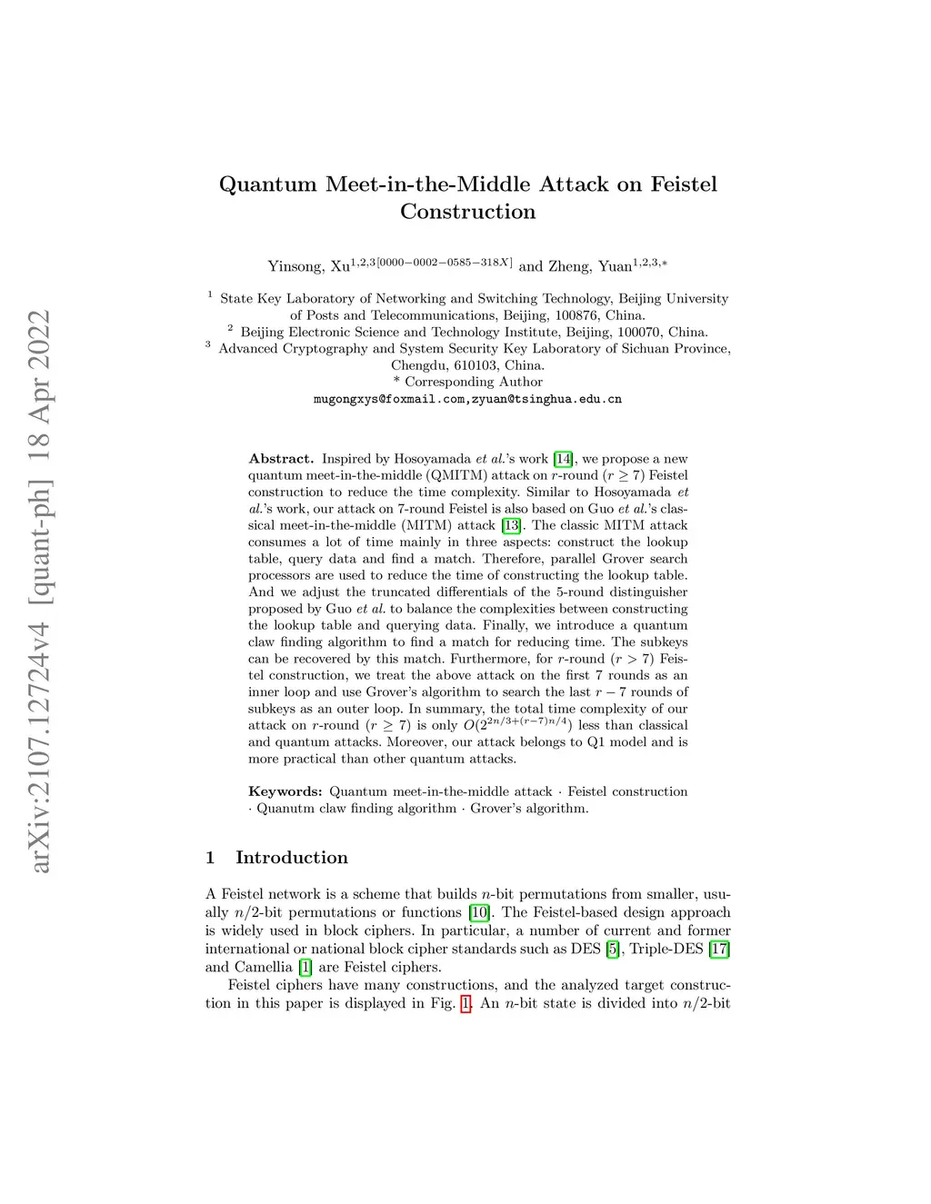 Quantum Meet-in-the-Middle Attack on Feistel Construction