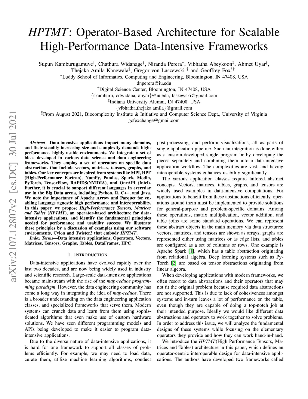 HPTMT: Operator-Based Architecture for Scalable High-Performance