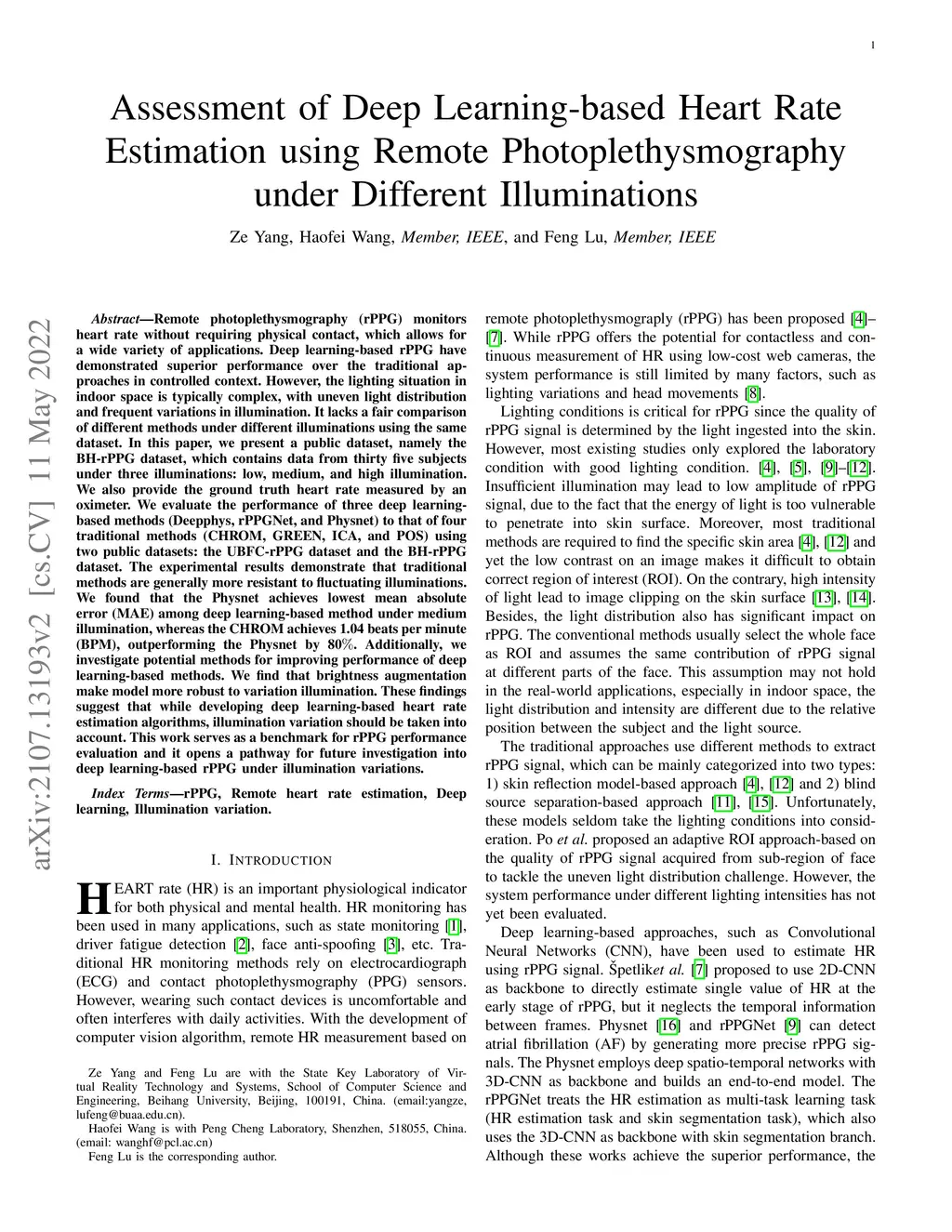 Remote photoplethysmography (rPPG) monitors heart rate without requiring physical contact, which allows for a wide variety of applications. Deep learning-based rPPG have demonstrated superior performance over the traditional approaches in controlled context. However, the lighting situation in indoor space is typically complex, with uneven light distribution and frequent variations in illumination. It lacks a fair comparison of different methods under different illuminations using the same dataset. In this paper, we present a public dataset, namely the BH-rPPG dataset, which contains data from thirty five subjects under three illuminations: low, medium, and high illumination. We also provide the ground truth heart rate measured by an oximeter. We evaluate the performance of three deep learning-based methods (Deepphys, rPPGNet, and Physnet) to that of four traditional methods (CHROM, GREEN, ICA, and POS) using two public datasets: the UBFC-rPPG dataset and the BH-rPPG dataset. The experimental results demonstrate that traditional methods are generally more resistant to fluctuating illuminations. We found that the Physnet achieves lowest mean absolute error (MAE) among deep learning-based method under medium illumination, whereas the CHROM achieves 1.04 beats per minute (BPM), outperforming the Physnet by 80. Additionally, we investigate potential methods for improving performance of deep learning-based methods. We find that brightness augmentation make model more robust to variation illumination. These findings suggest that while developing deep learning-based heart rate estimation algorithms, illumination variation should be taken into account. This work serves as a benchmark for rPPG performance evaluation and it opens a pathway for future investigation into deep learning-based rPPG under illumination variations.
