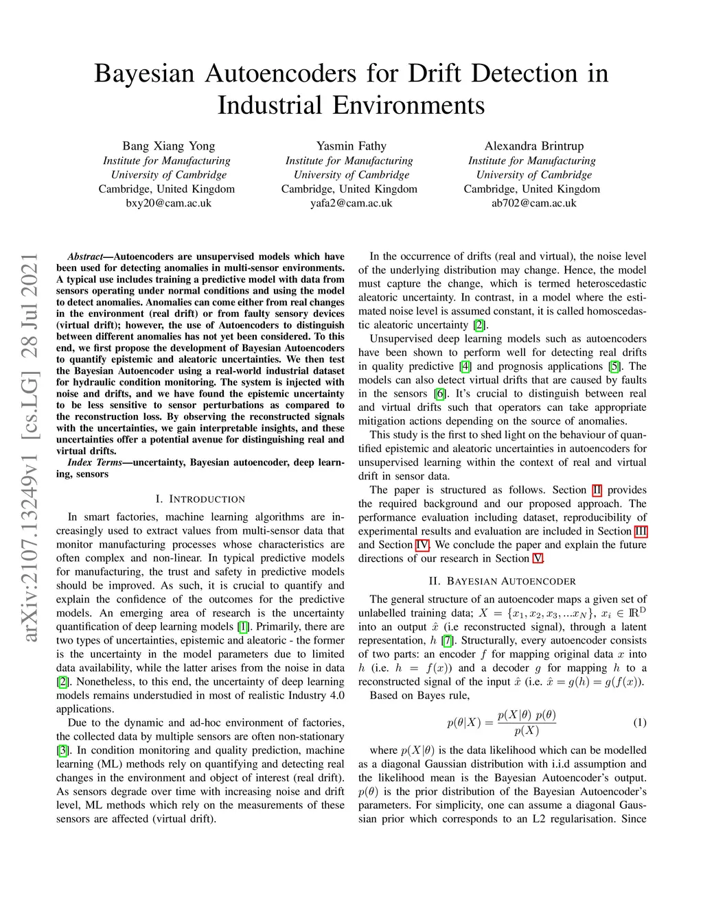 Bayesian Autoencoders for Drift Detection in Industrial Environments