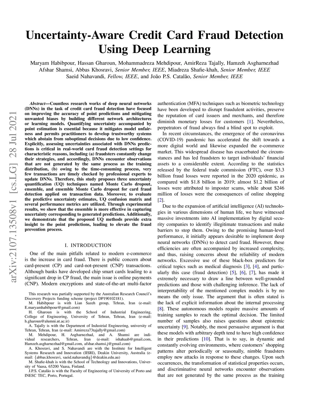 Uncertainty-Aware Credit Card Fraud Detection Using Deep Learning