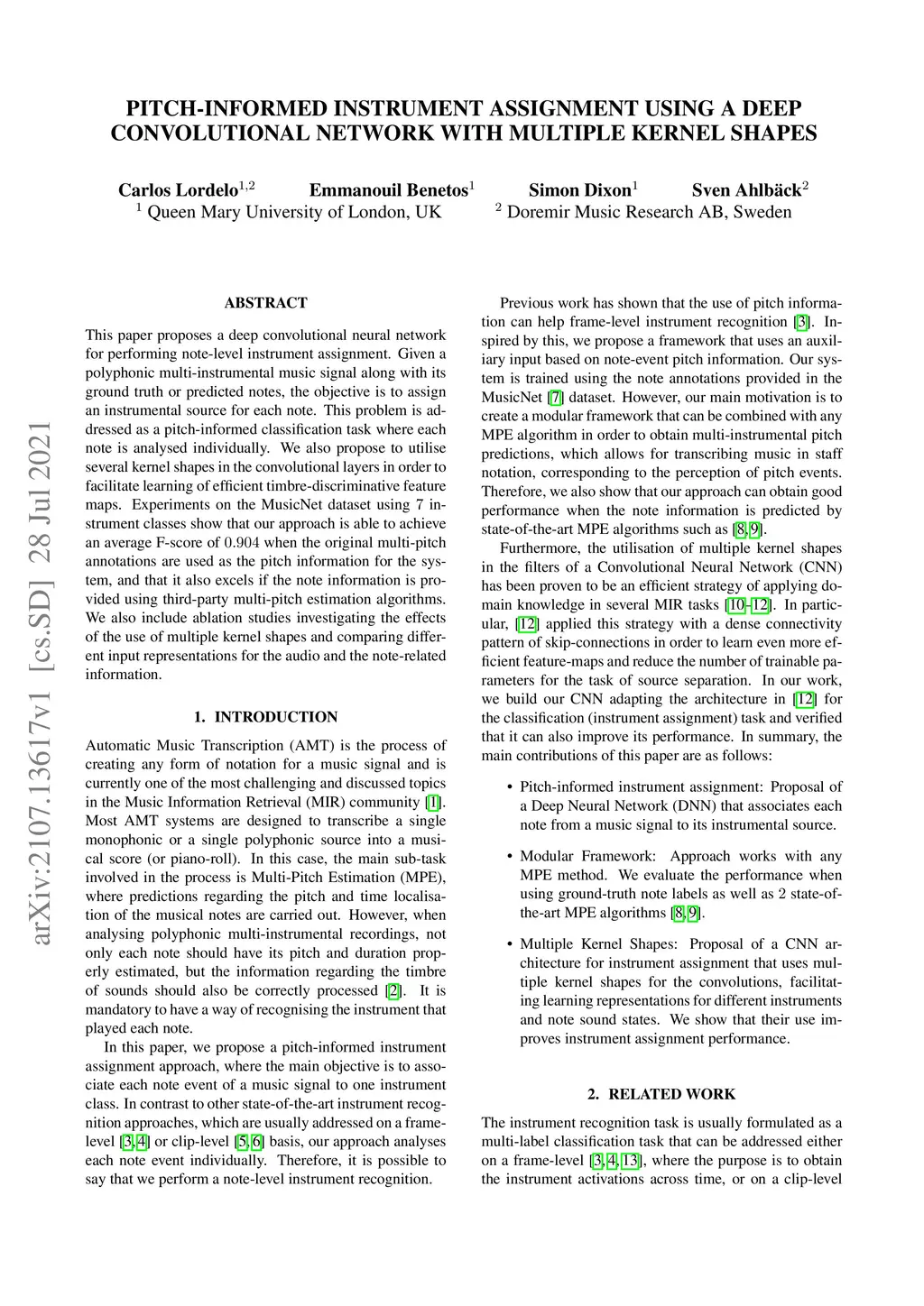 Pitch-Informed Instrument Assignment Using a Deep Convolutional Network