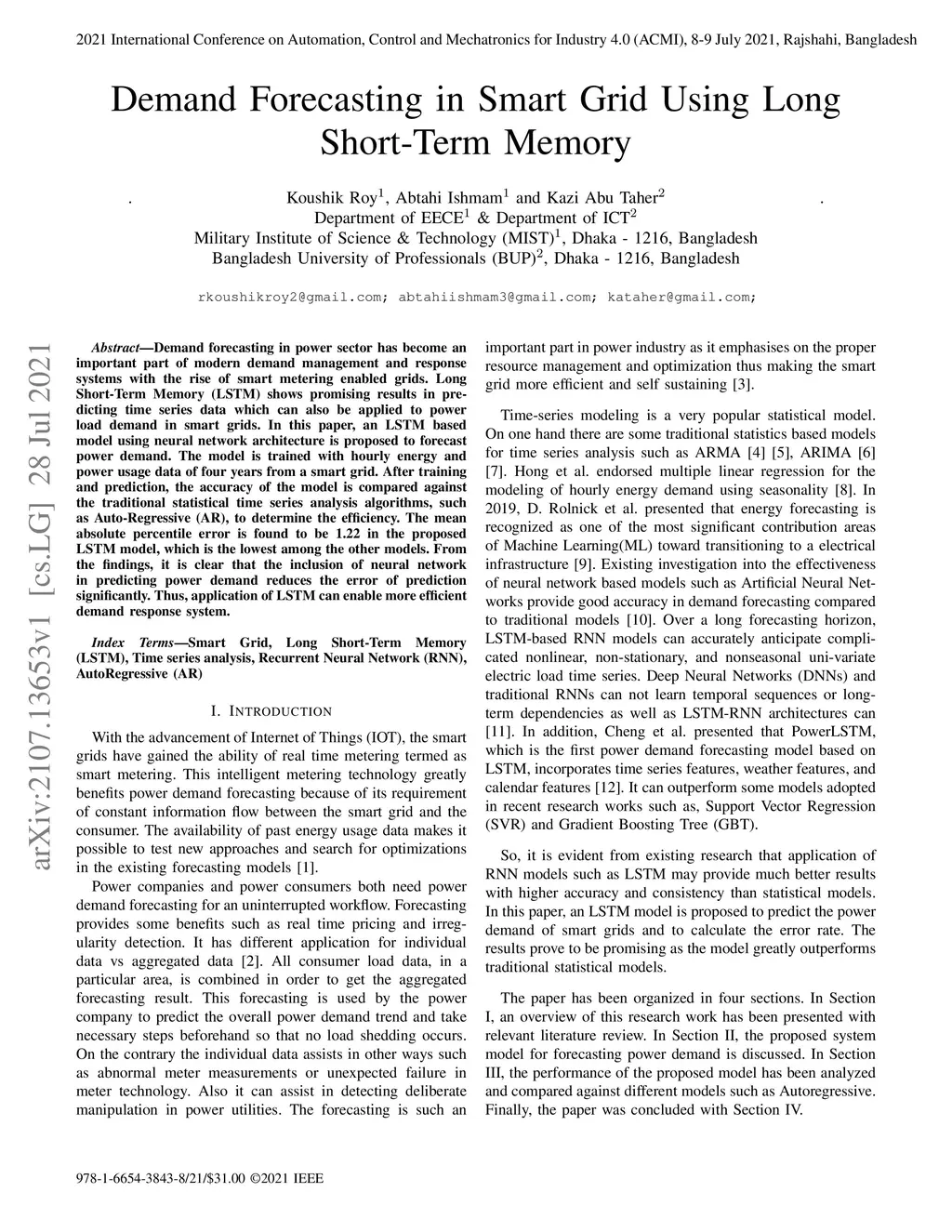Demand Forecasting in Smart Grid Using Long Short-Term Memory
