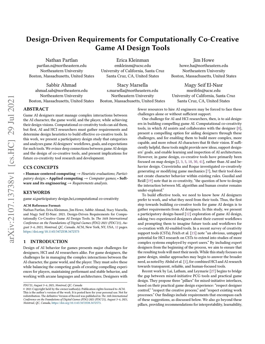 Design-Driven Requirements for Computationally Co-Creative Game AI