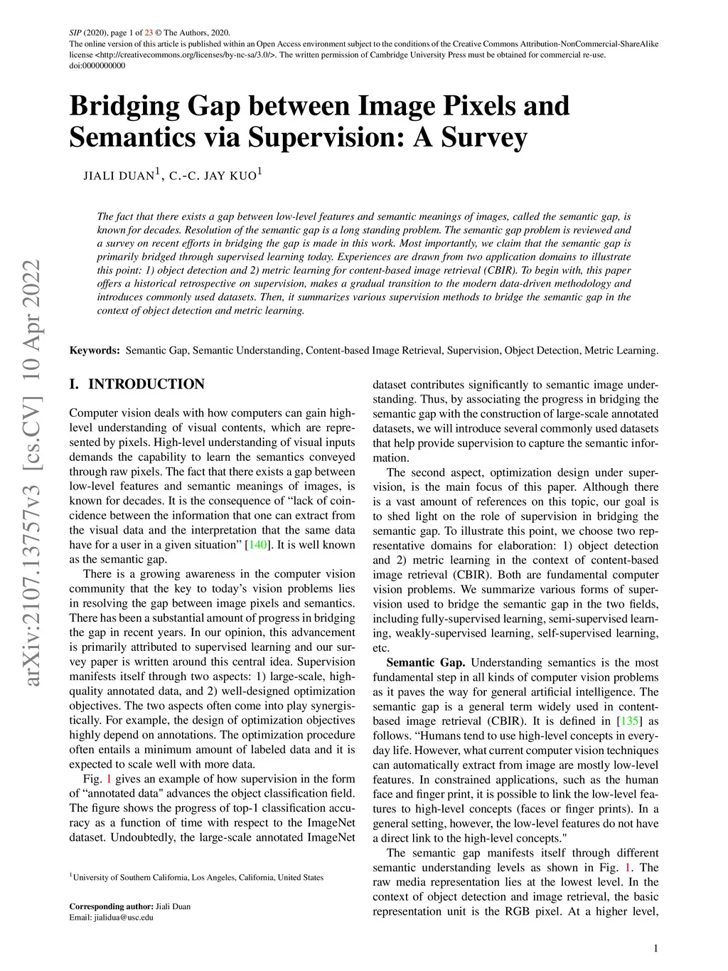 Bridging Gap between Image Pixels and Semantics via Supervision: A Survey