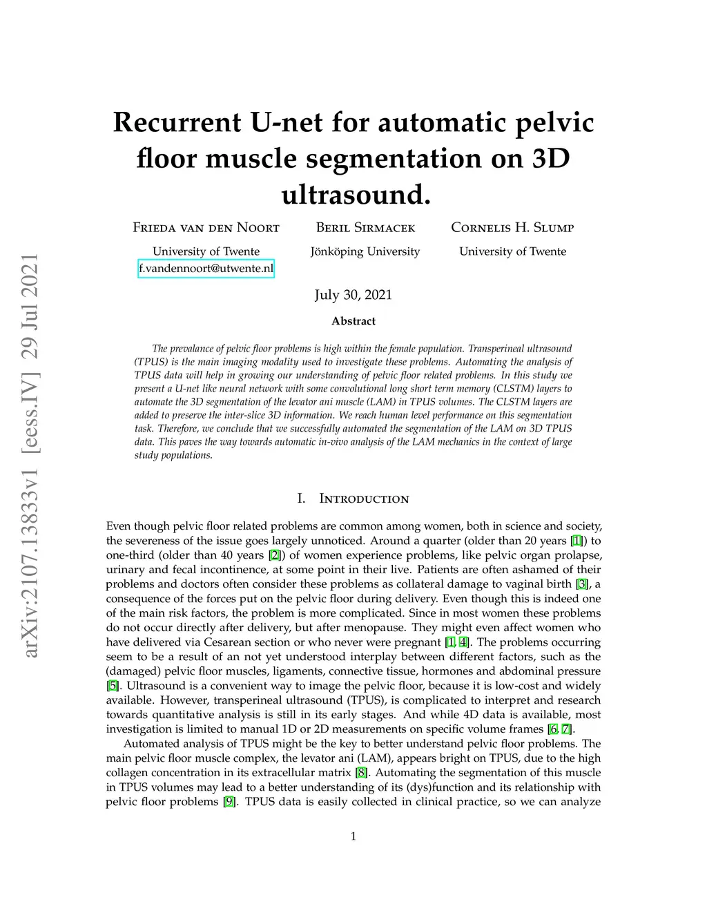 Recurrent U-net for automatic pelvic floor muscle segmentation on 3D