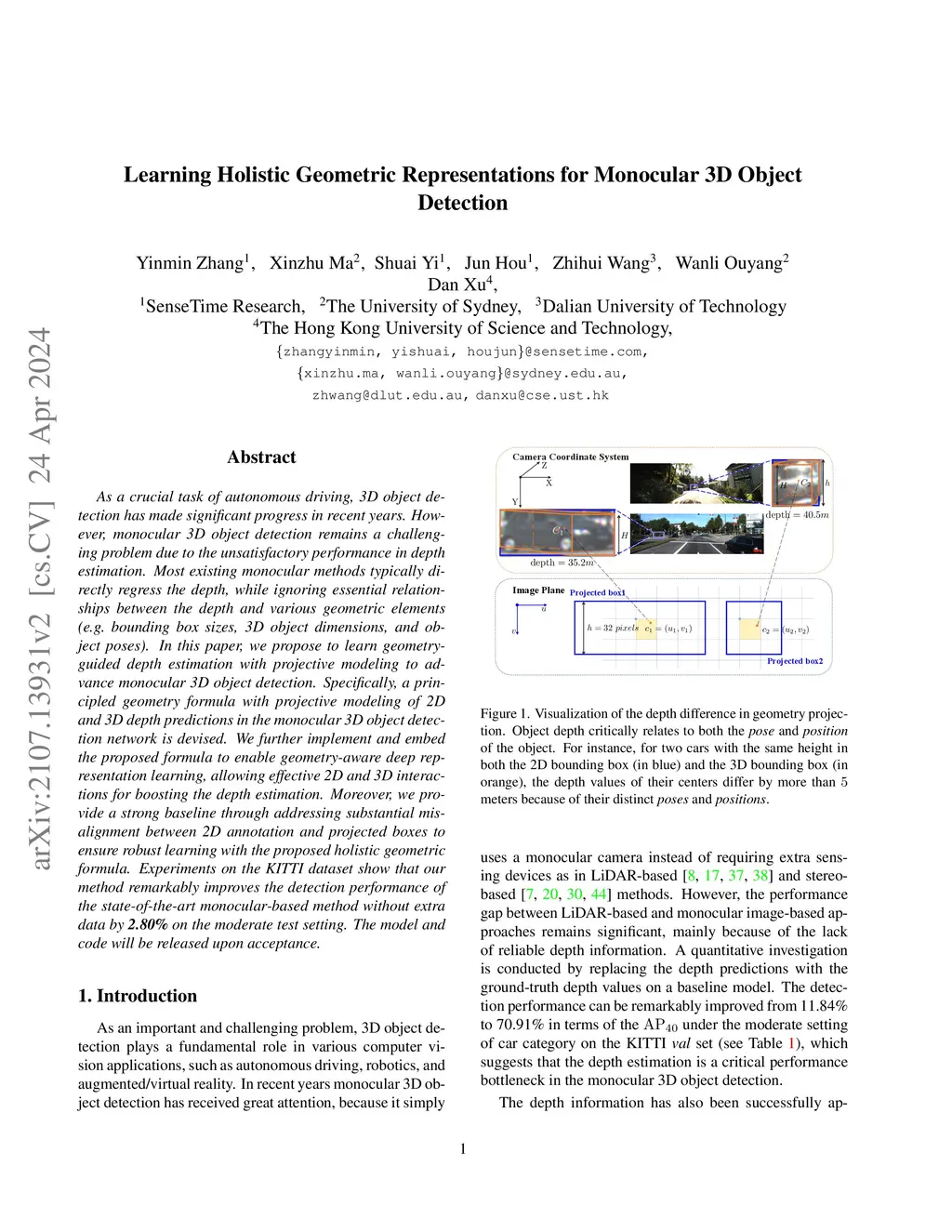 Learning Geometry-Guided Depth via Projective Modeling for Monocular 3D