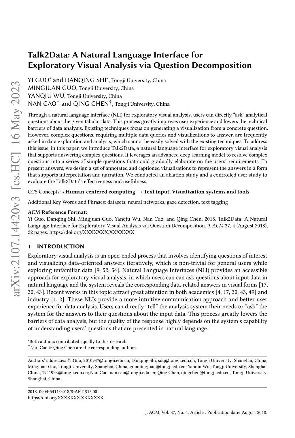 Talk2Data: A Natural Language Interface for Exploratory Visual Analysis