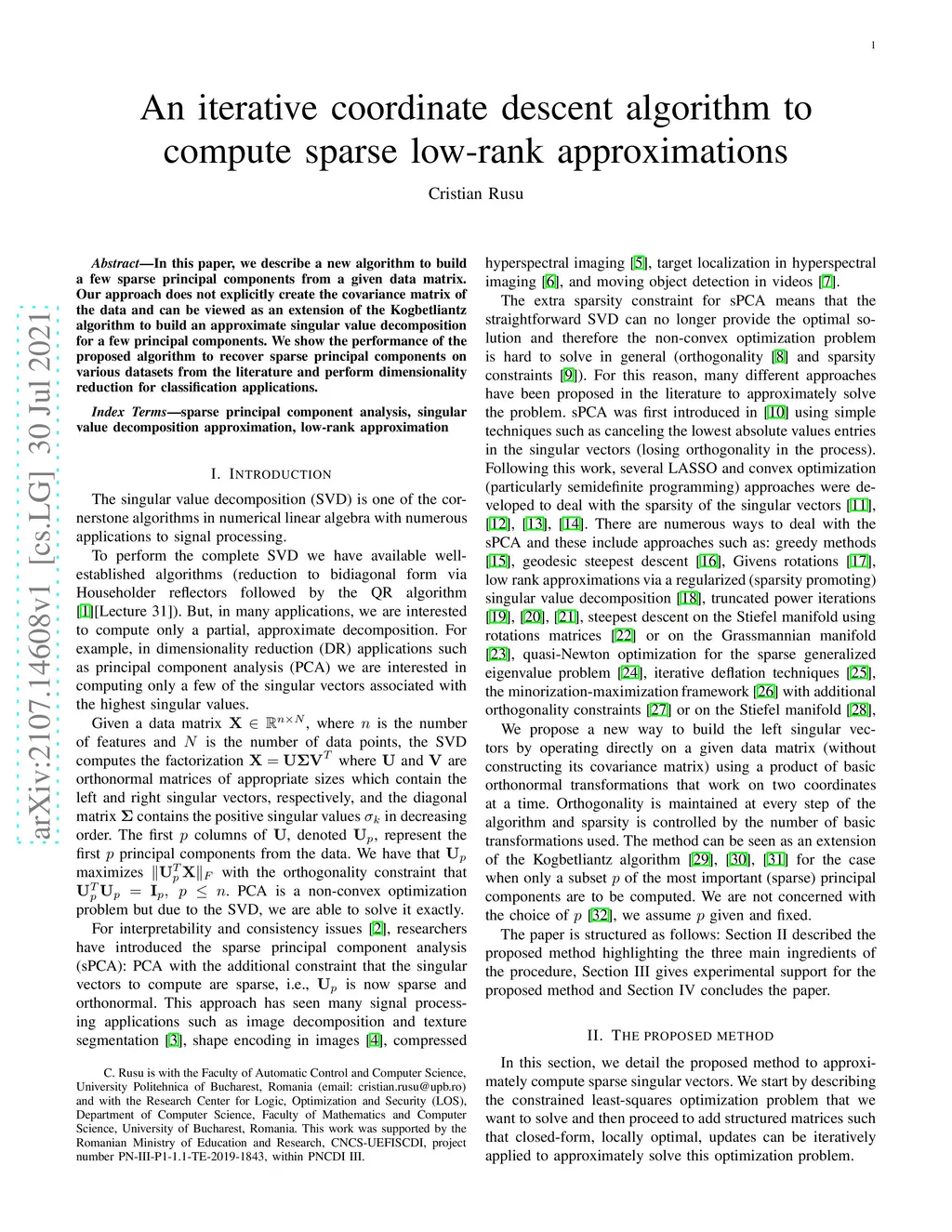 An iterative coordinate descent algorithm to compute sparse low-rank