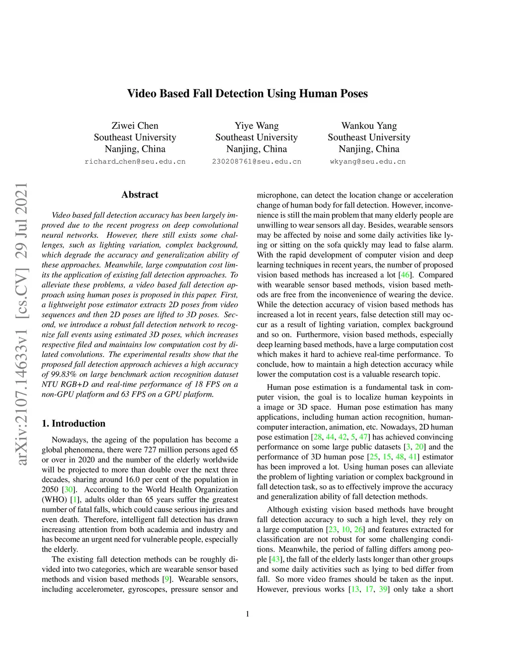 Video Based Fall Detection Using Human Poses