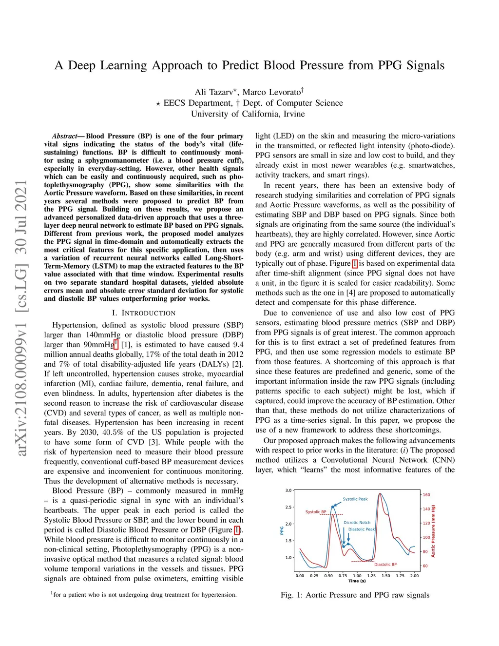 A Deep Learning Approach to Predict Blood Pressure from PPG Signals