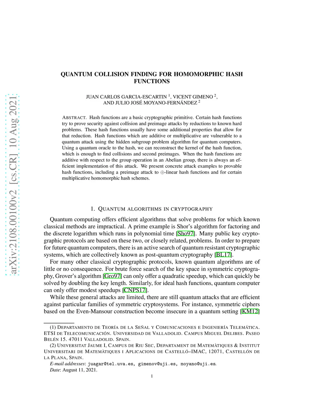 Quantum collision finding for homomorphic hash functions