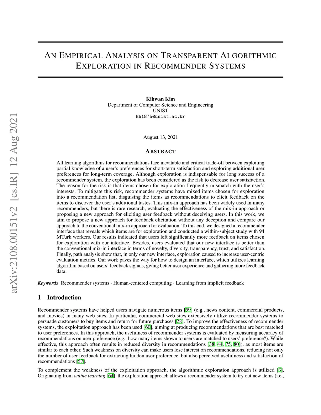 An Empirical Analysis on Transparent Algorithmic Exploration in