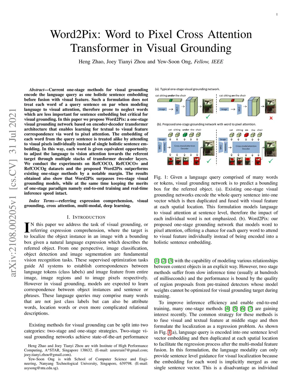 Word2Pix: Word to Pixel Cross Attention Transformer in Visual Grounding