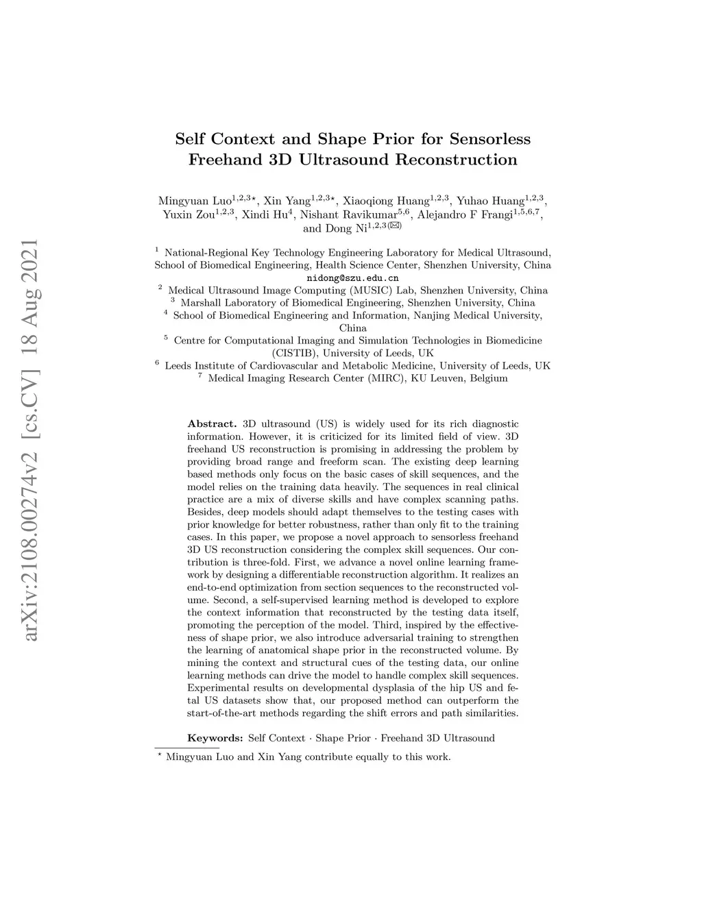 Self Context and Shape Prior for Sensorless Freehand 3D Ultrasound