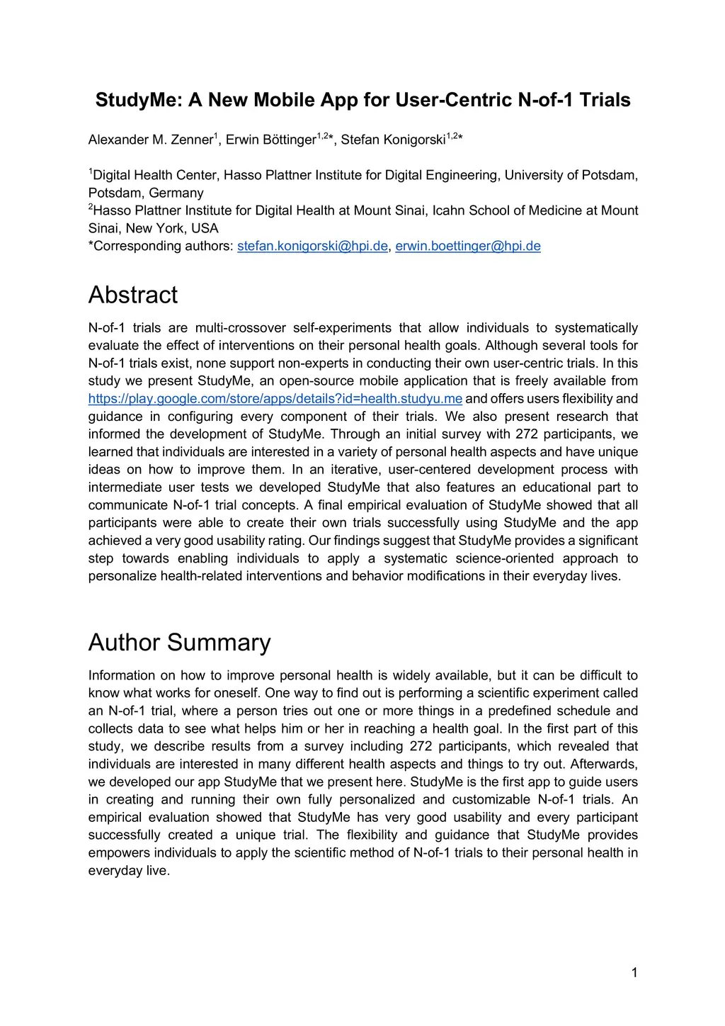 StudyMe: A New Mobile App for User-Centric N-of-1 Trials