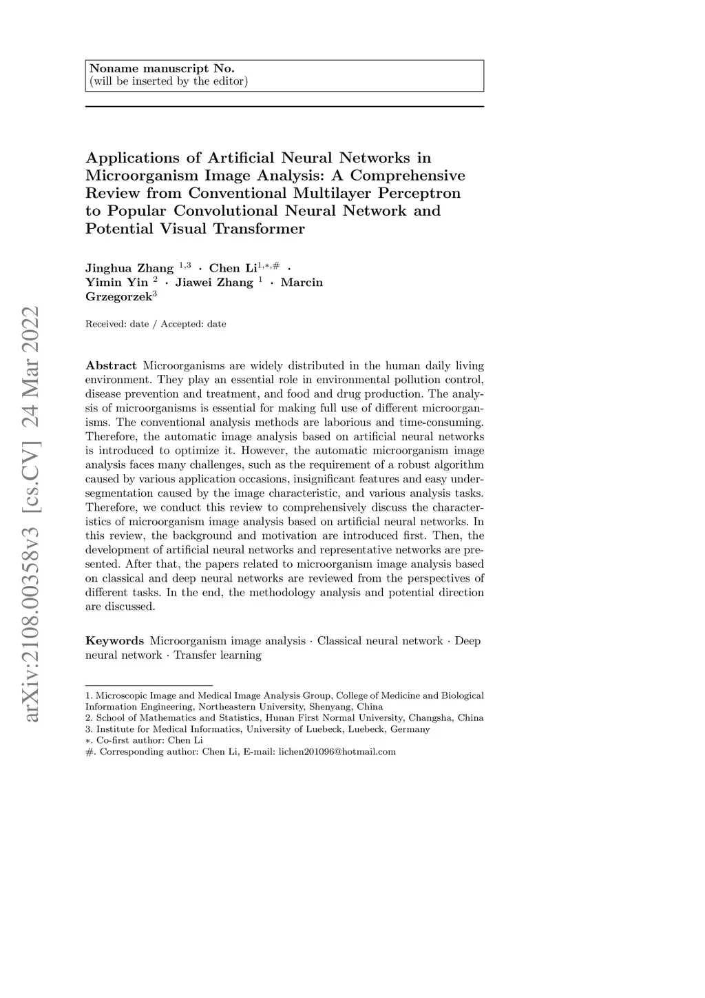 Applications of Artificial Neural Networks in Microorganism Image