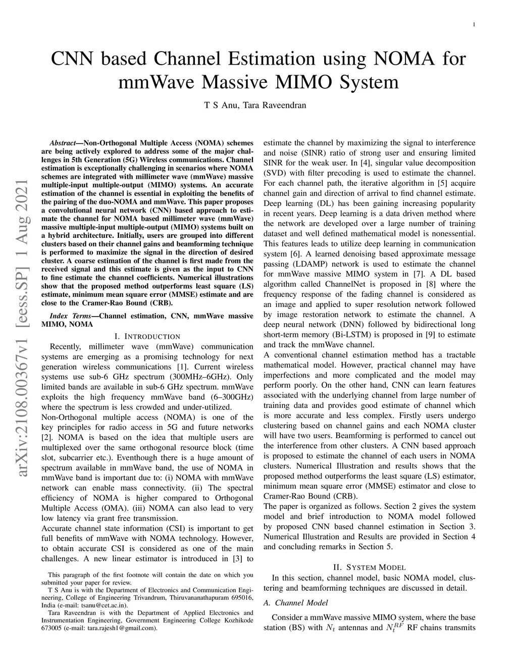CNN based Channel Estimation using NOMA for mmWave Massive MIMO System