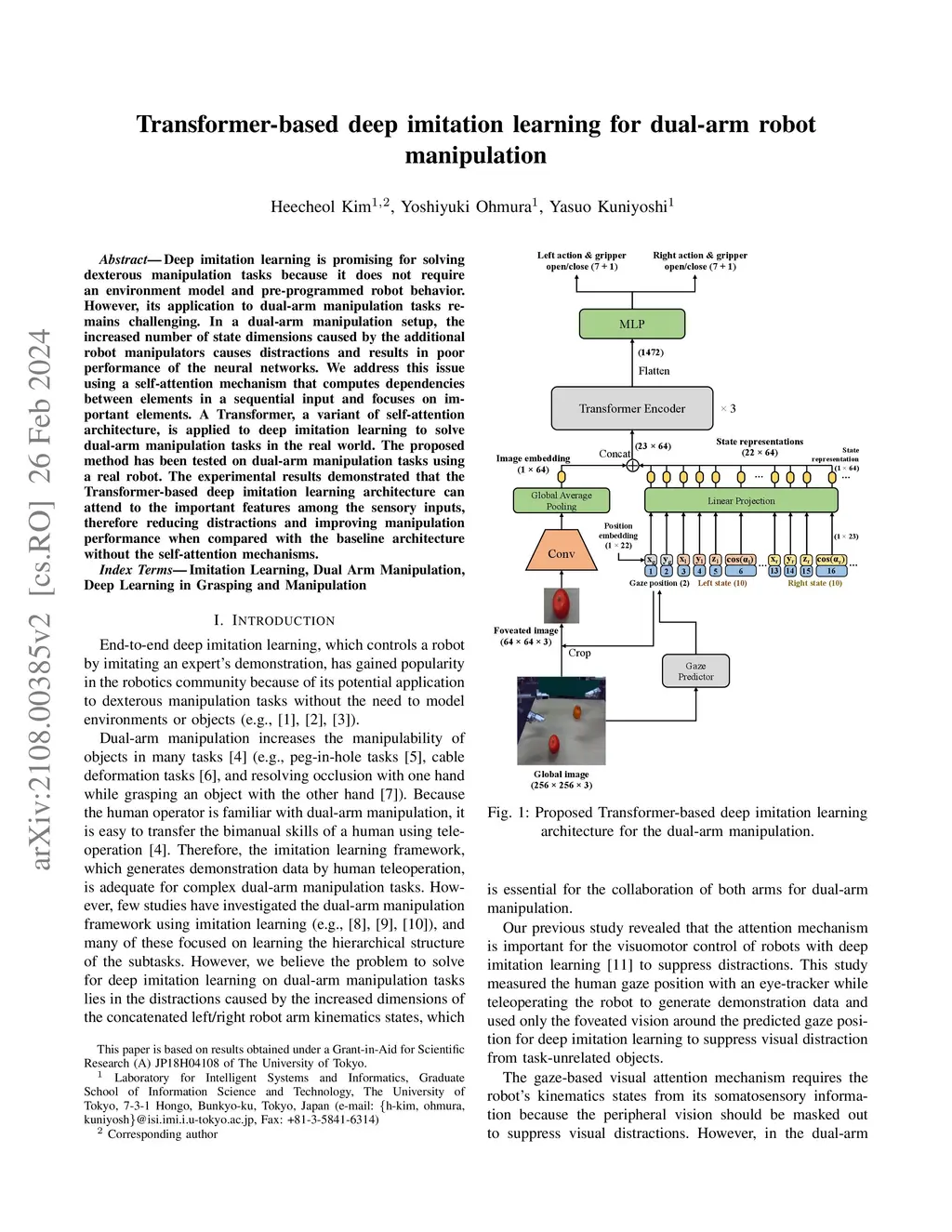 Transformer-based deep imitation learning for dual-arm robot manipulation