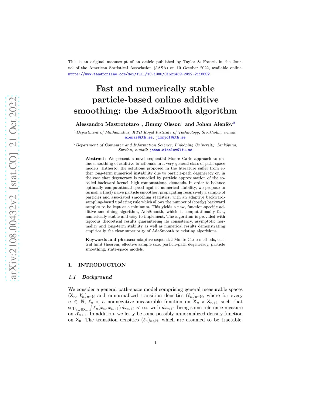 We present a novel sequential Monte Carlo approach to online smoothing of additive functionals in a very general class of path-space models. Hitherto, the solutions proposed in the literature suffer from either long-term numerical instability due to particle-path degeneracy or, in the case that degeneracy is remedied by particle approximation of the so-called backward kernel, high computational demands. In order to balance optimally computational speed against numerical stability, we propose to furnish a (fast) naive particle smoother, propagating recursively a sample of particles and associated smoothing statistics, with an adaptive backward-sampling-based updating rule which allows the number of (costly) backward samples to be kept at a minimum. This yields a new, function-specific additive smoothing algorithm, AdaSmooth, which is computationally fast, numerically stable and easy to implement. The algorithm is provided with rigorous theoretical results guaranteeing its consistency, asymptotic normality and long-term stability as well as numerical results demonstrating empirically the clear superiority of AdaSmooth to existing algorithms.